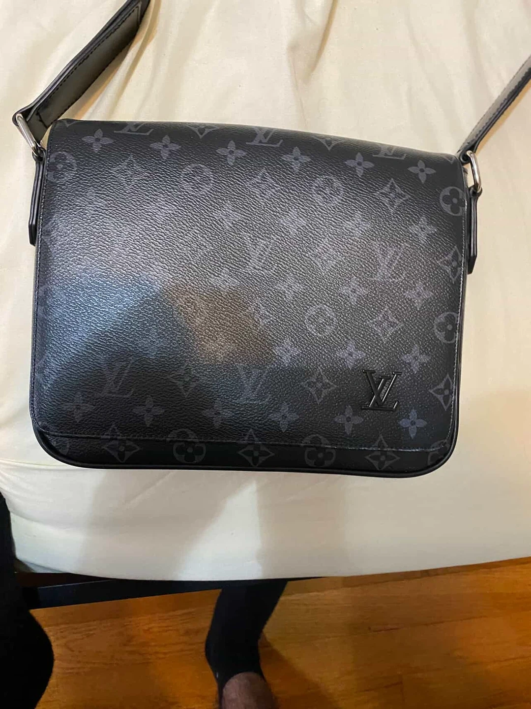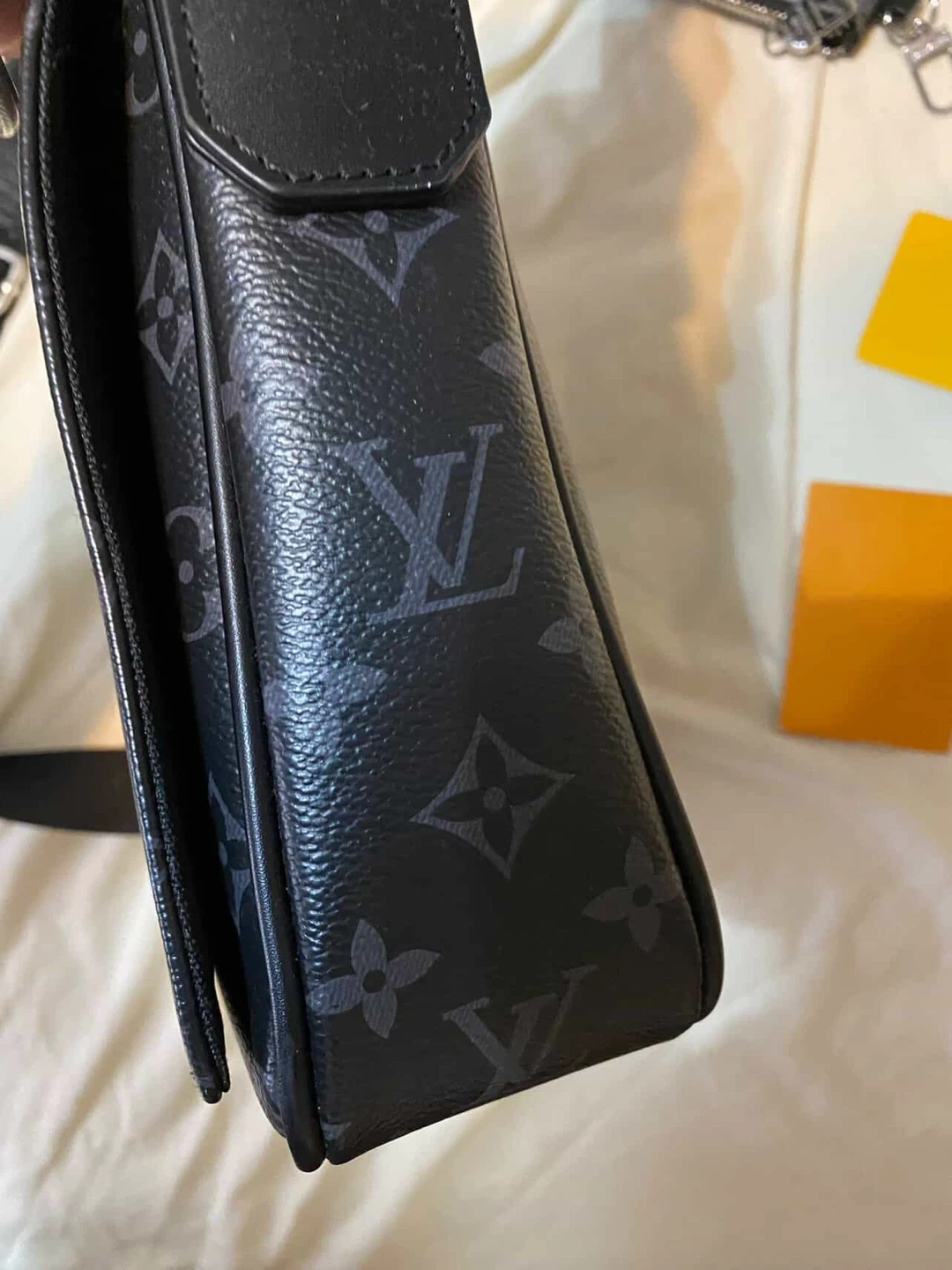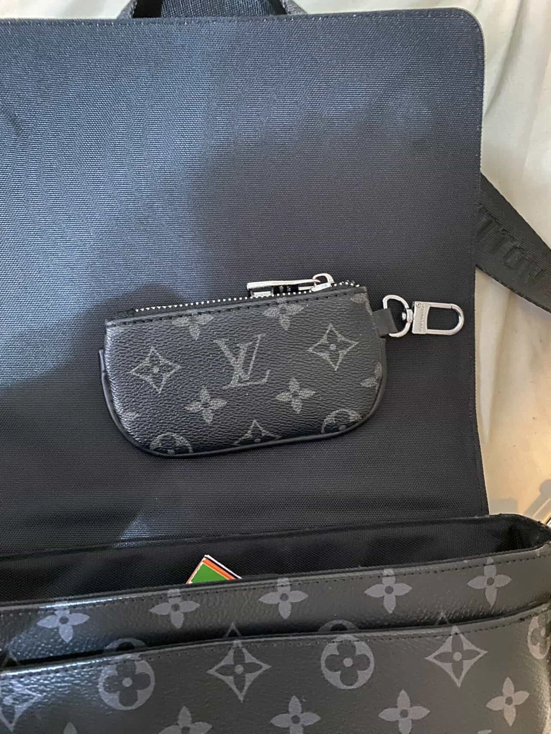 This Louis Vuitton messenger bag features the iconic monogram canvas in a sleek black and grey colourway. It includes a small zippered pouch for added convenience. The adjustable strap ensures a comfortable fit for everyday wear.
