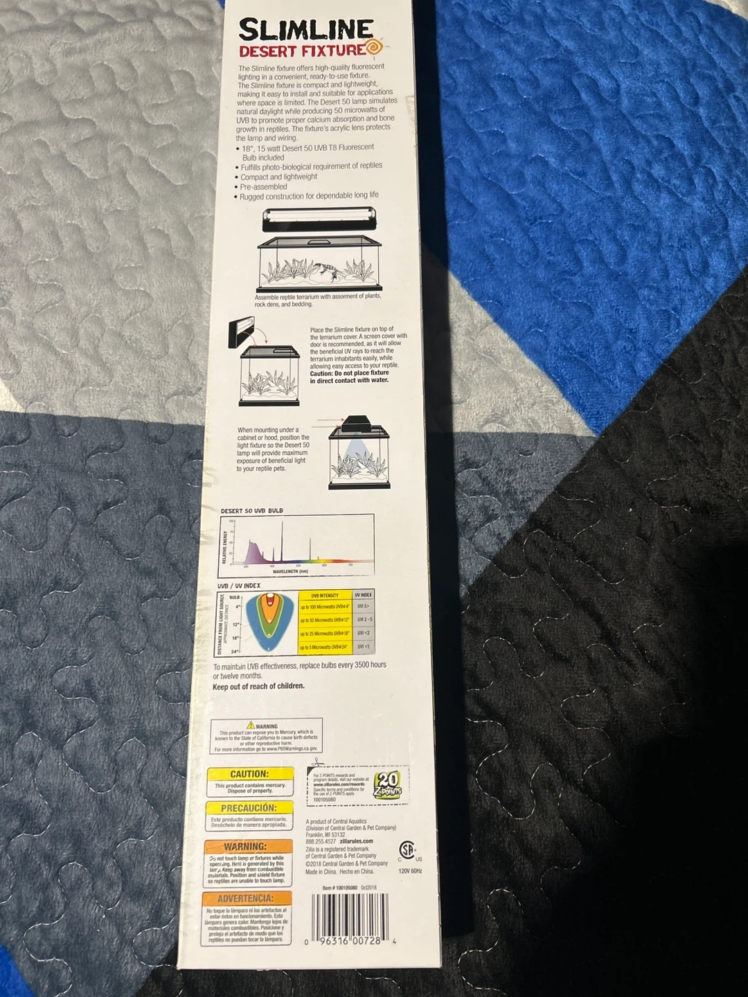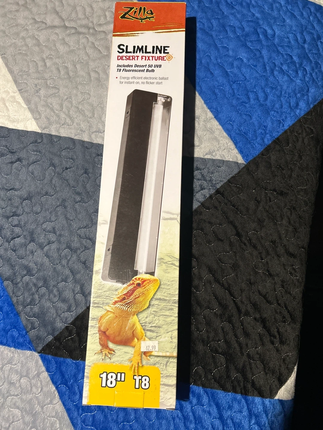 This Slimline Desert Fixture offers high-quality fluorescent lighting for reptiles. It includes a Desert 50 UVB 18" fluorescent bulb. Features a compact and lightweight design with rugged construction for dependable long life. Bulb included.