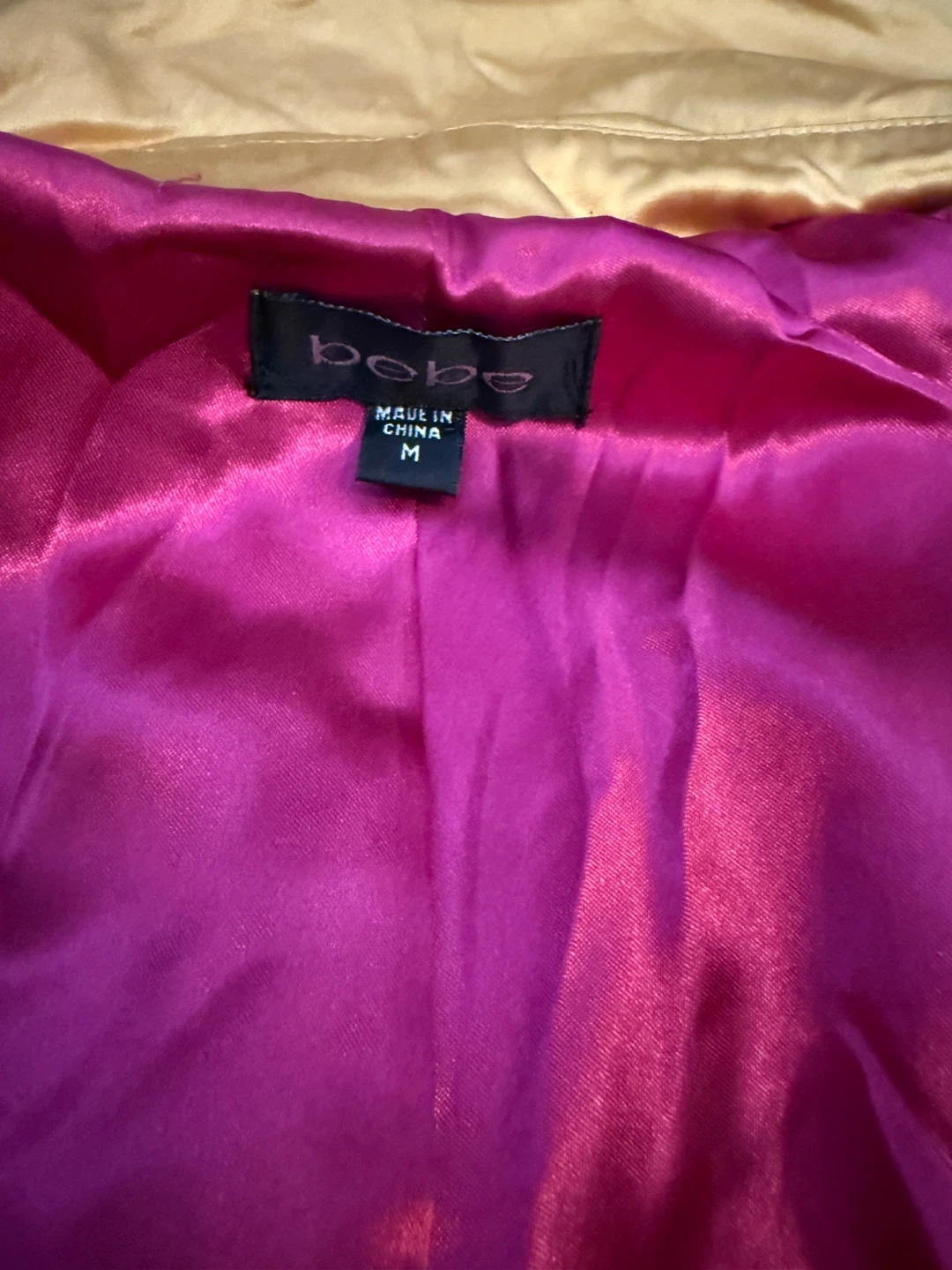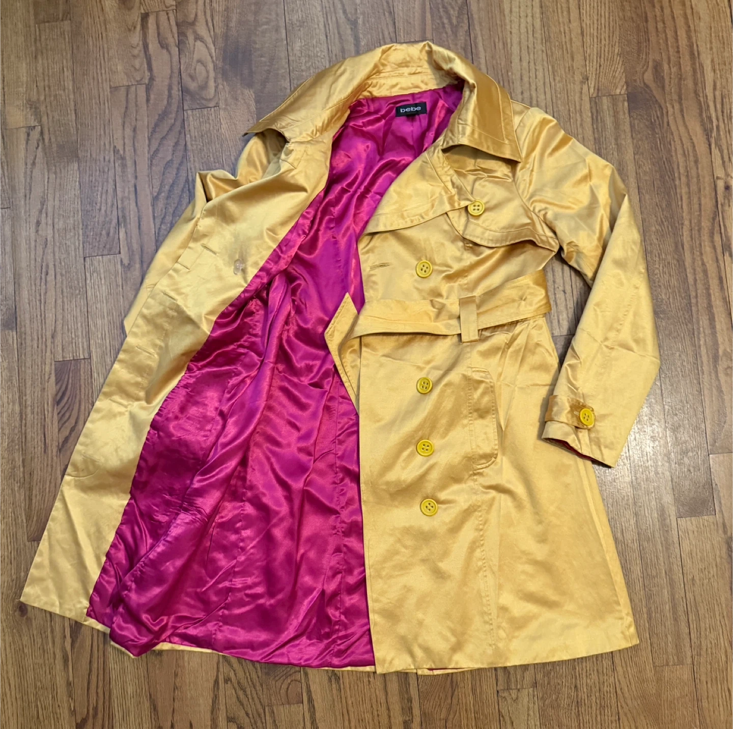 Pre-loved Bebe Gold Satin Double Breasted Trench Coat π