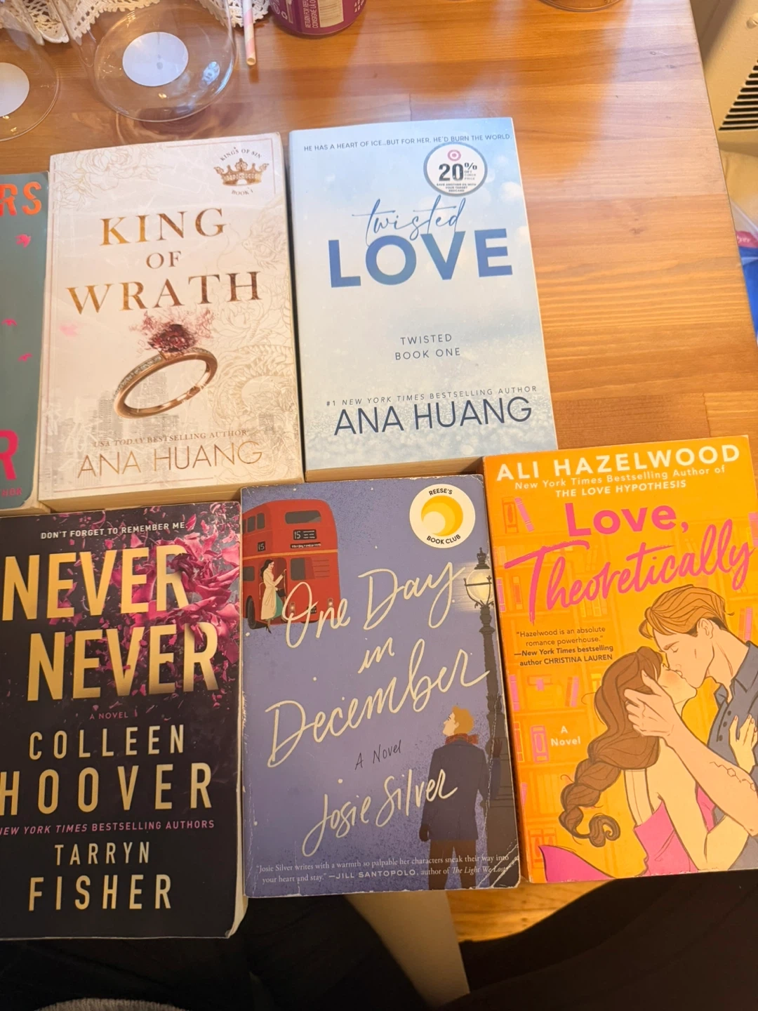This listing includes several popular romance novels by acclaimed authors. It features titles like 'King of Wrath', 'Twisted Love', 'Love, Theoretically', and multiple books by Colleen Hoover. These paperbacks are great additions to any romance reader's collection.