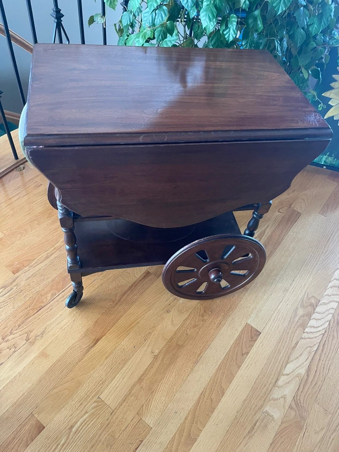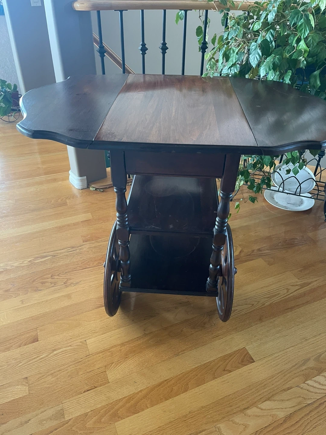 Vintage Wooden Serving Cart with Drop Leaves