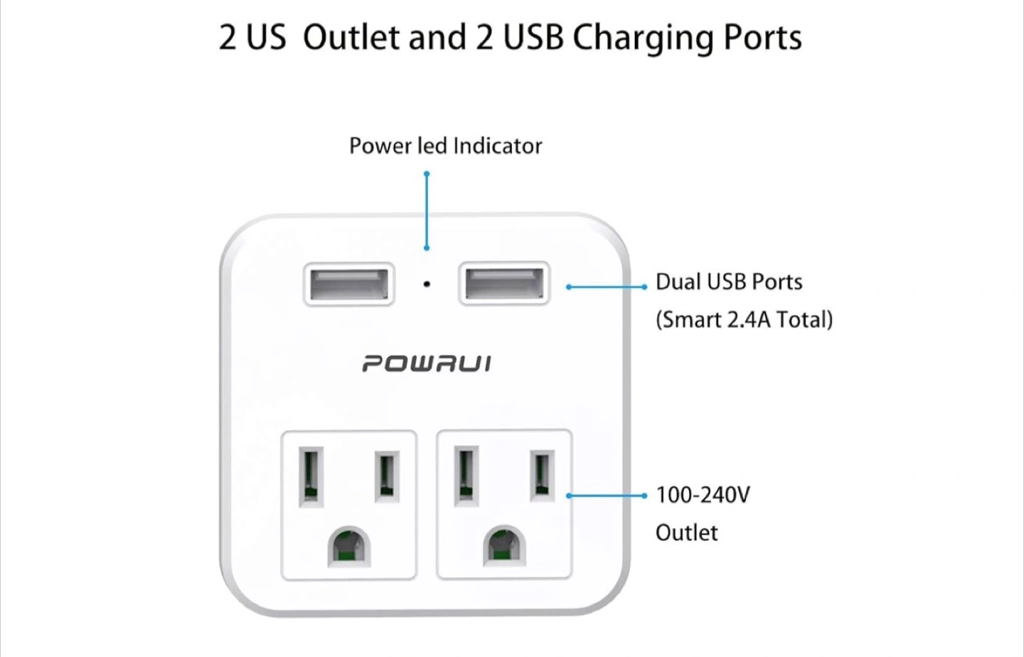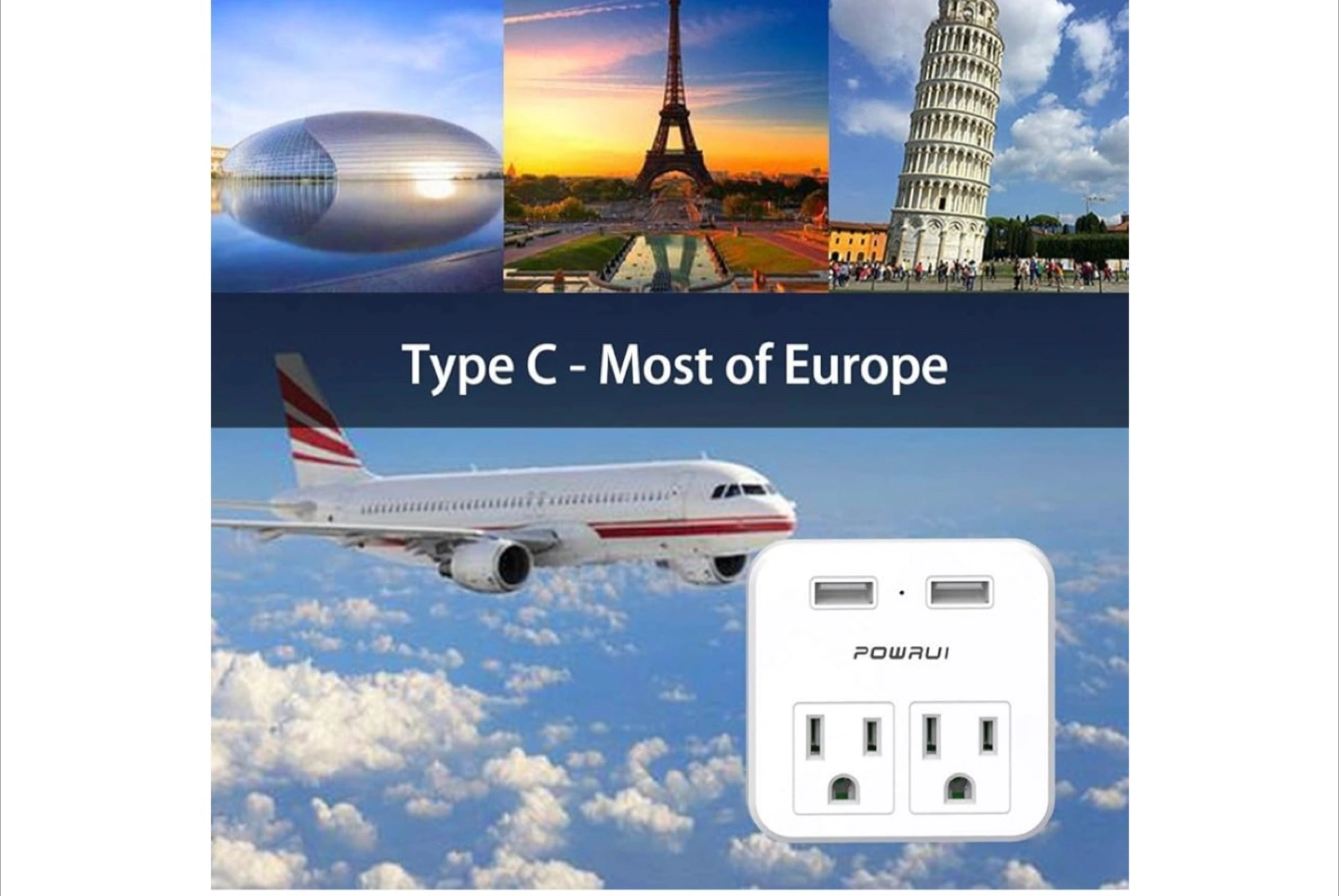 POWRAUI Travel Adapter - Type C, Dual USB Charger