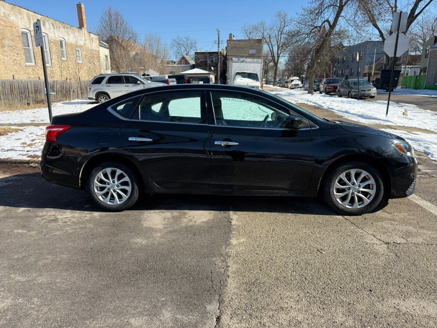 This is a black 2019 Nissan Sentra SV sedan. 141,000 original miles It's a 4-door vehicle with an automatic transmission. It features a backup camera and Bluetooth connectivity.