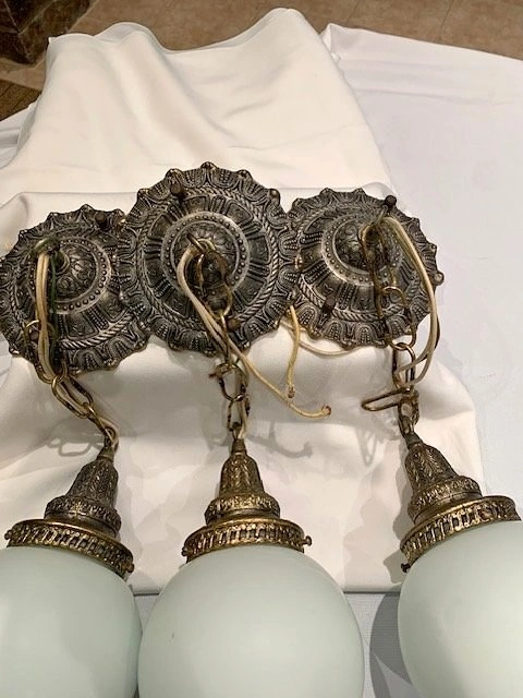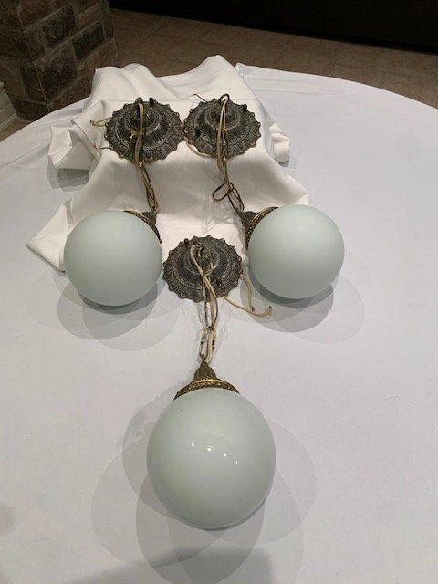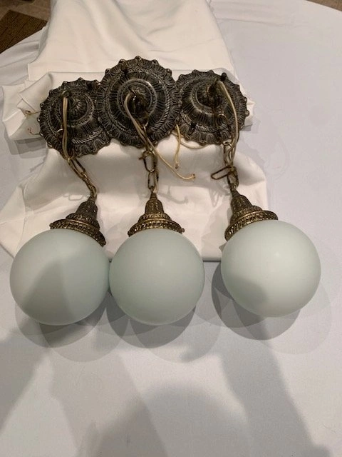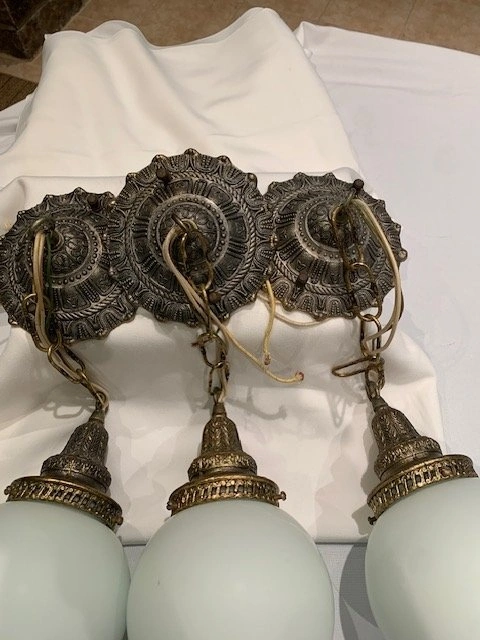3 Vintage Ceiling Light Fixtures Milk Glass Globes