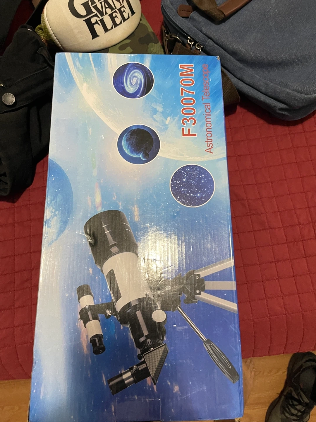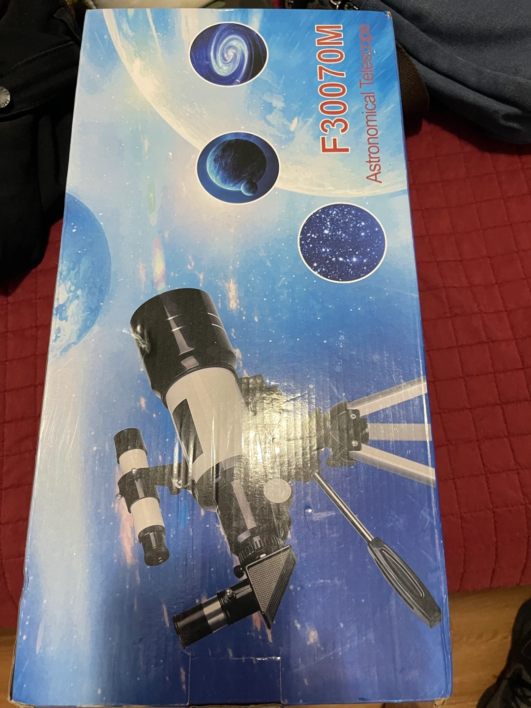 Selling an F30070M Astronomical Telescope. It comes in its original box and includes all components. Perfect for stargazing!