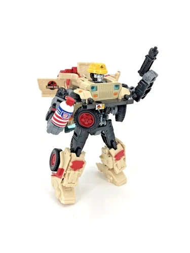 Transformers x Jurassic Park action figure JEEP J12. A must-have for any collector or fan of either or both Transformers and Jurassic franchises. The figure is designed with intricate details and great transformation. It comes without the Dino Dilophocon.