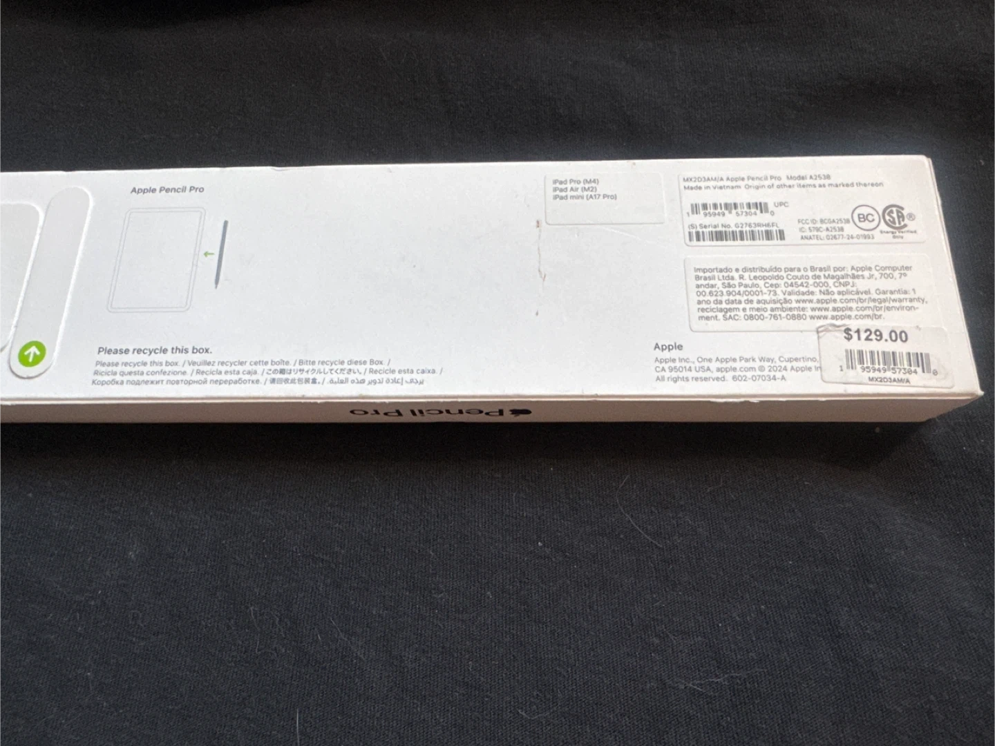 It's the Apple Pencil Pro for iPad Pro and iPad Air. Compatible with M4 iPad Pro and A17 Bionic iPad Air. Includes original box. Original price $129.00.