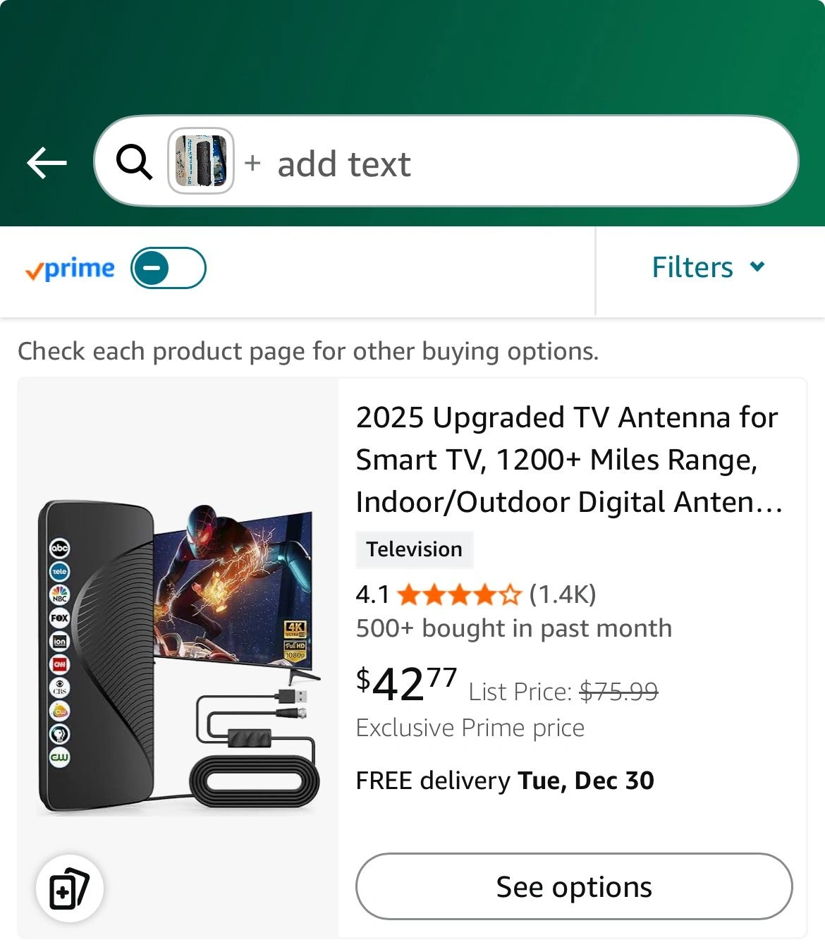This is an upgraded indoor/outdoor digital TV antenna designed for smart TVs. It offers a 1200+ mile range and supports HD 4K local channels. It includes an amplified signal booster for clear reception of 1080p and 4K TVs. Feel free to message if you have any questions!