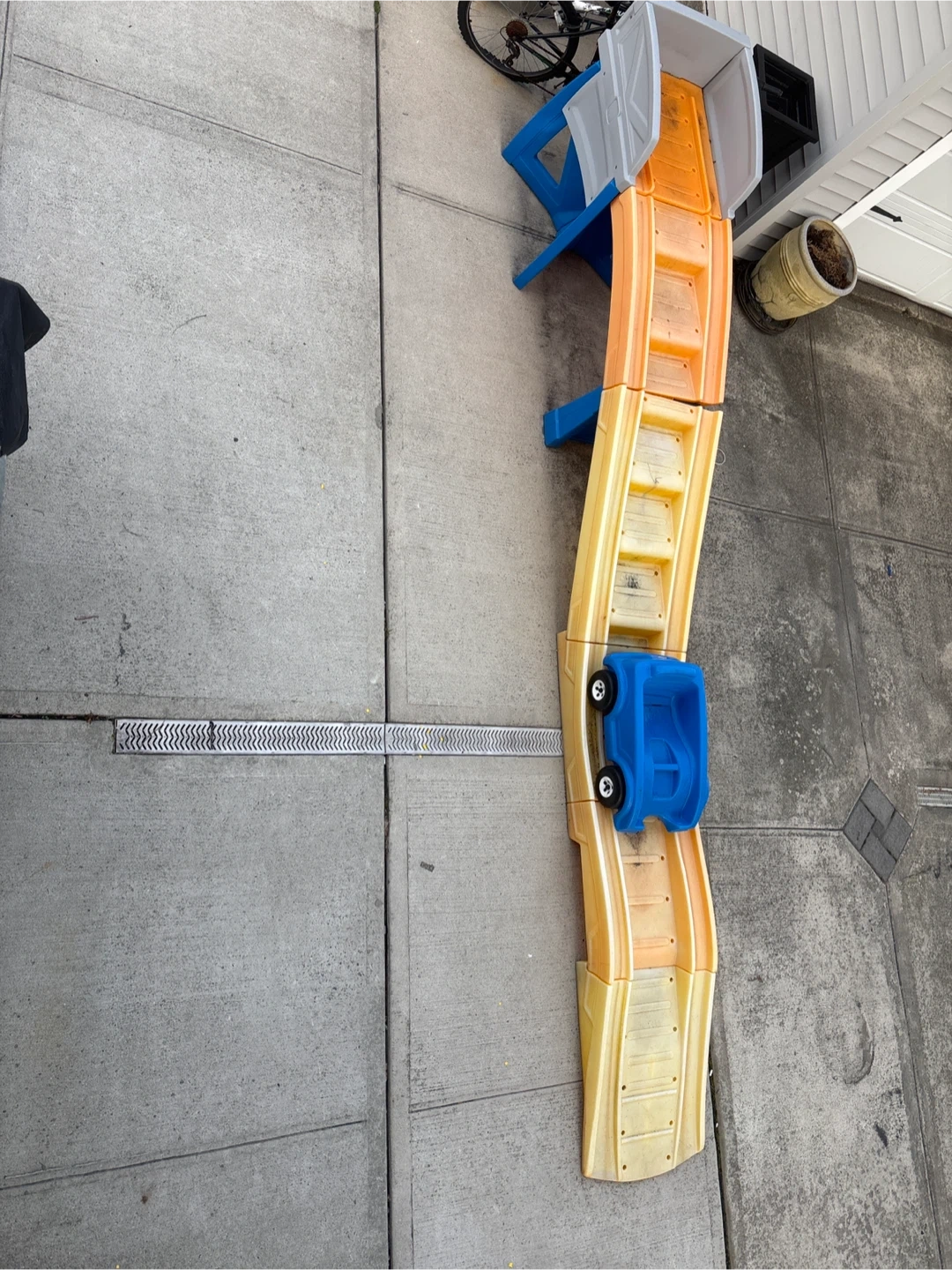 This is a Step2 Playland Express train and wagon set. It's made of durable plastic and includes the train car and wagon. Designed for outdoor play fun!