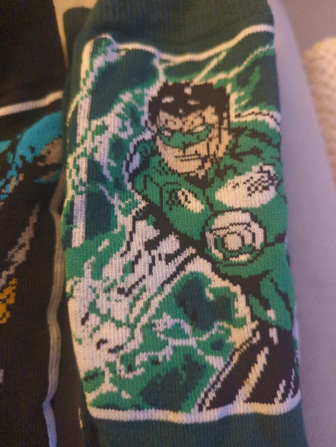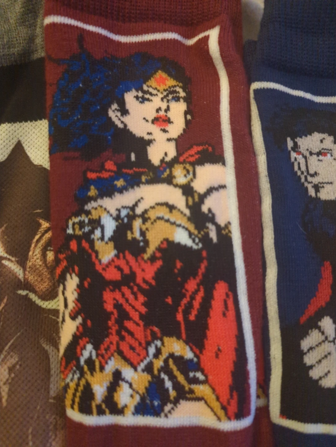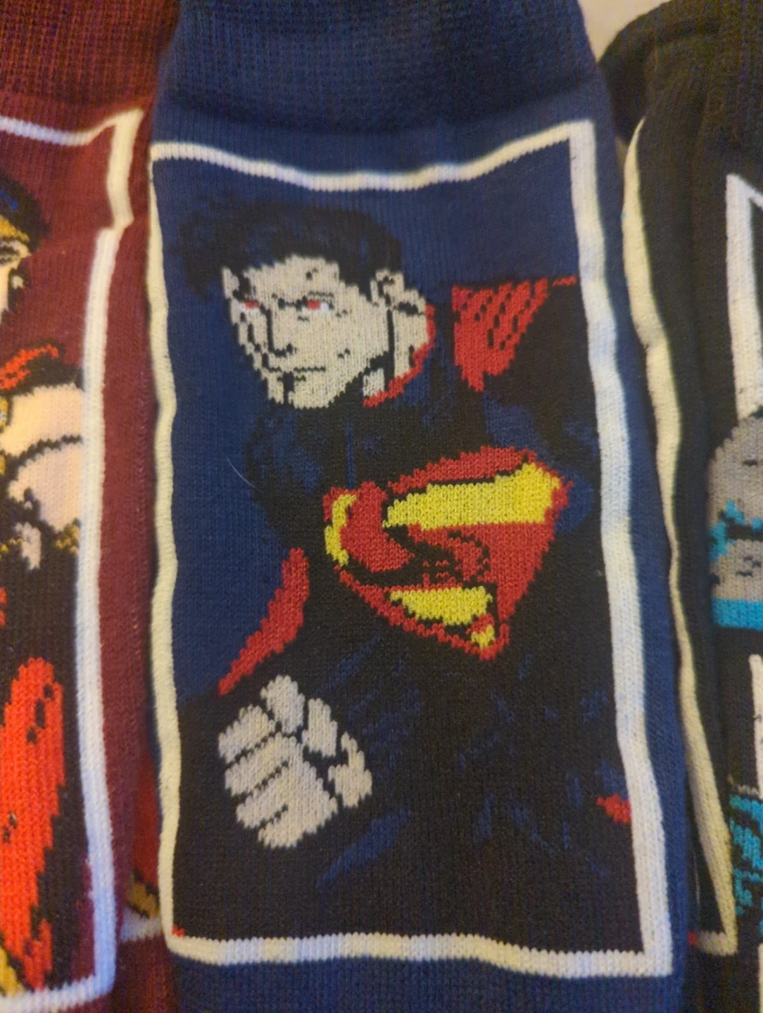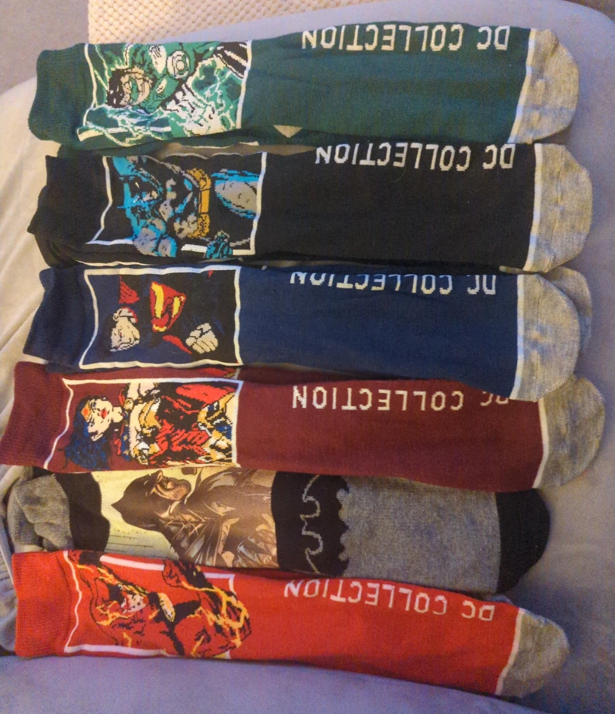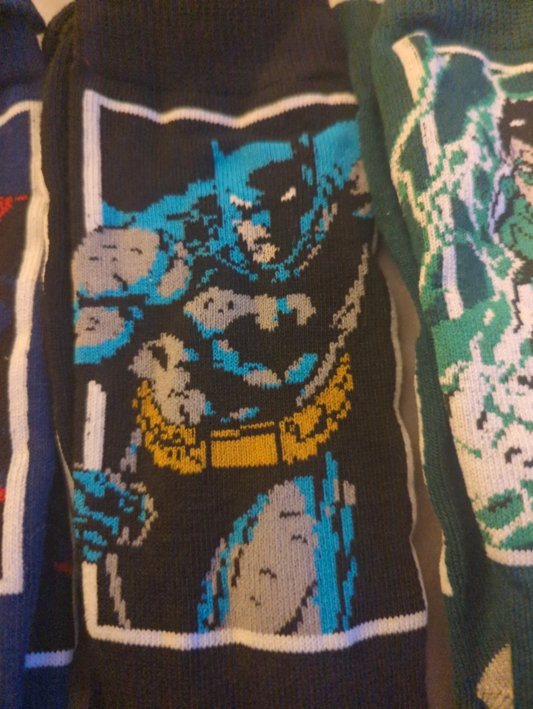 This is a collection of assorted DC Superhero socks. Each pair features iconic characters like Green Lantern, Batman, Superman, The Flash, and Wonder Woman. Happy to separate or combine with any of the other listings of socks and clothes that I've posted.