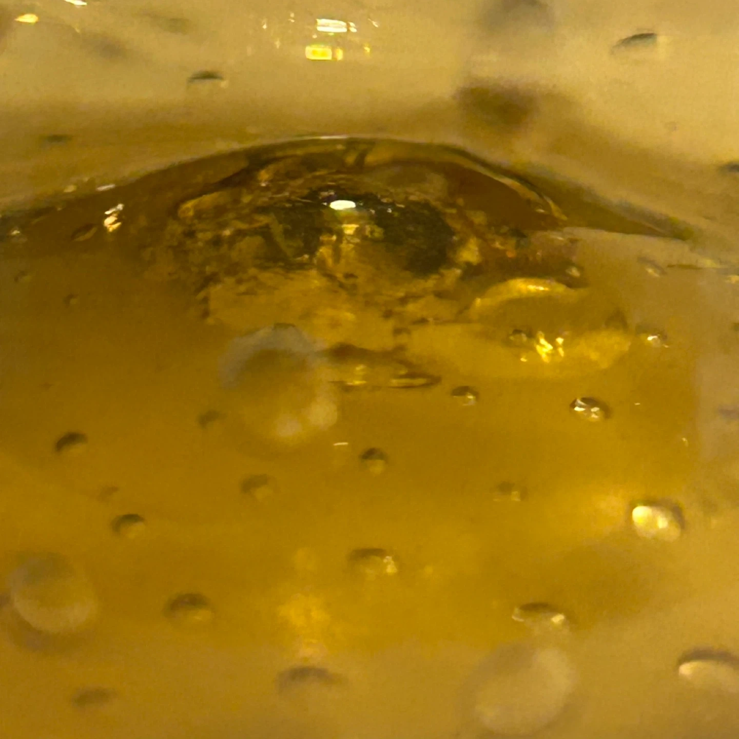 A large, luminous hand-blown art glass vase executed in a golden yellow to honey tone, distinguished by an all-over bullicante-style bubble pattern that animates the surface with depth and light. When placed alongside true amber glass, this example reads intentionally lighter and brighter—an effect consistent with mid-century European glassmaking rather than darker amber formulations.