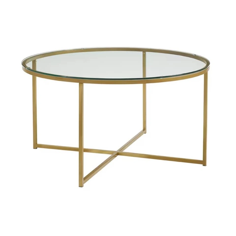Welwick Designs 36-inch Clear/Gold Round Glass Coffee Table