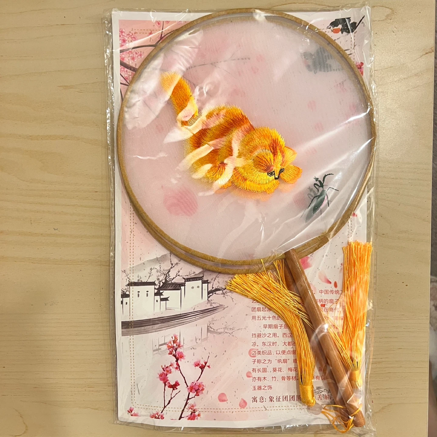 Handmade Silk Embroidery Cat Fan (Set of 2)