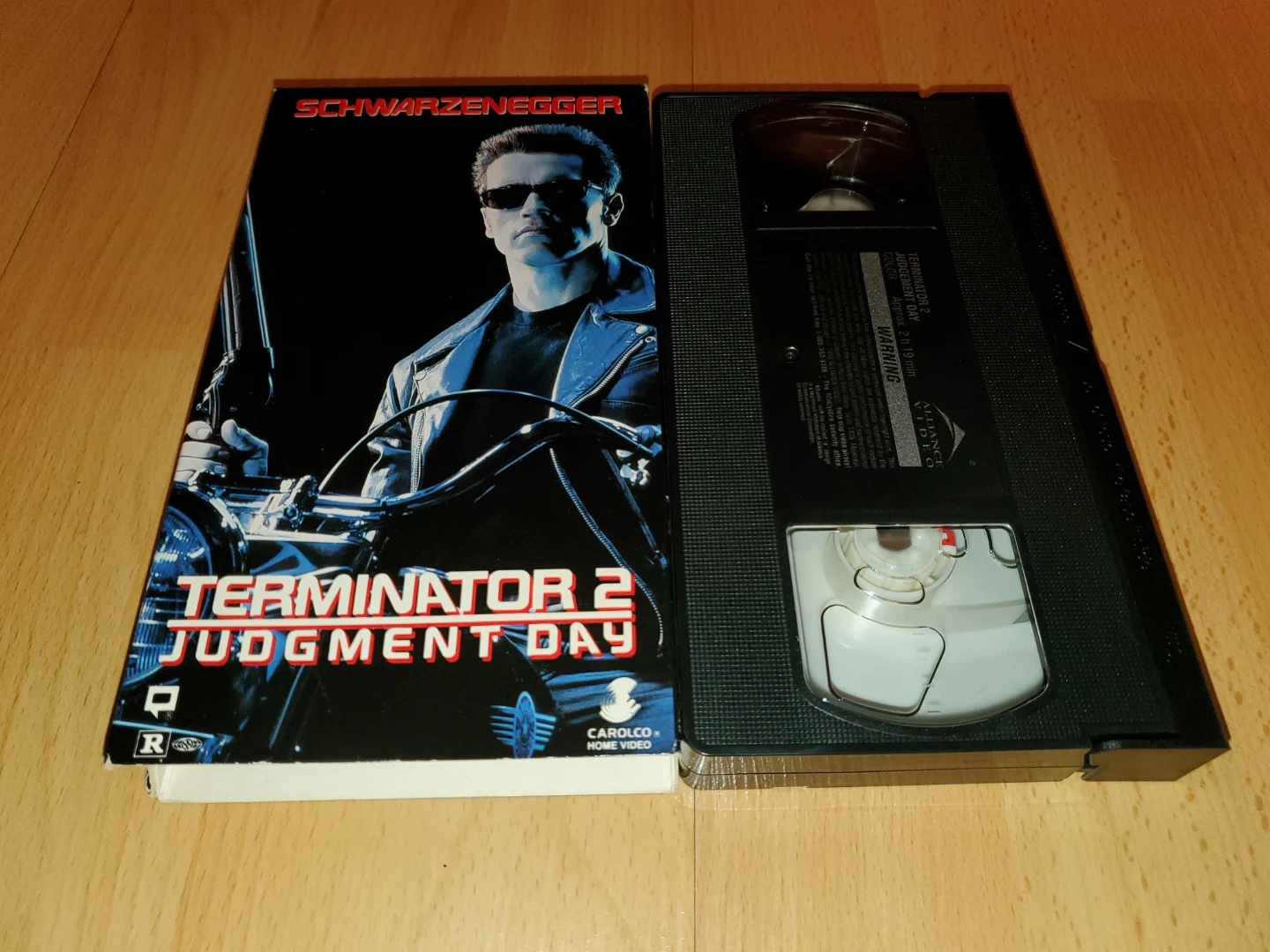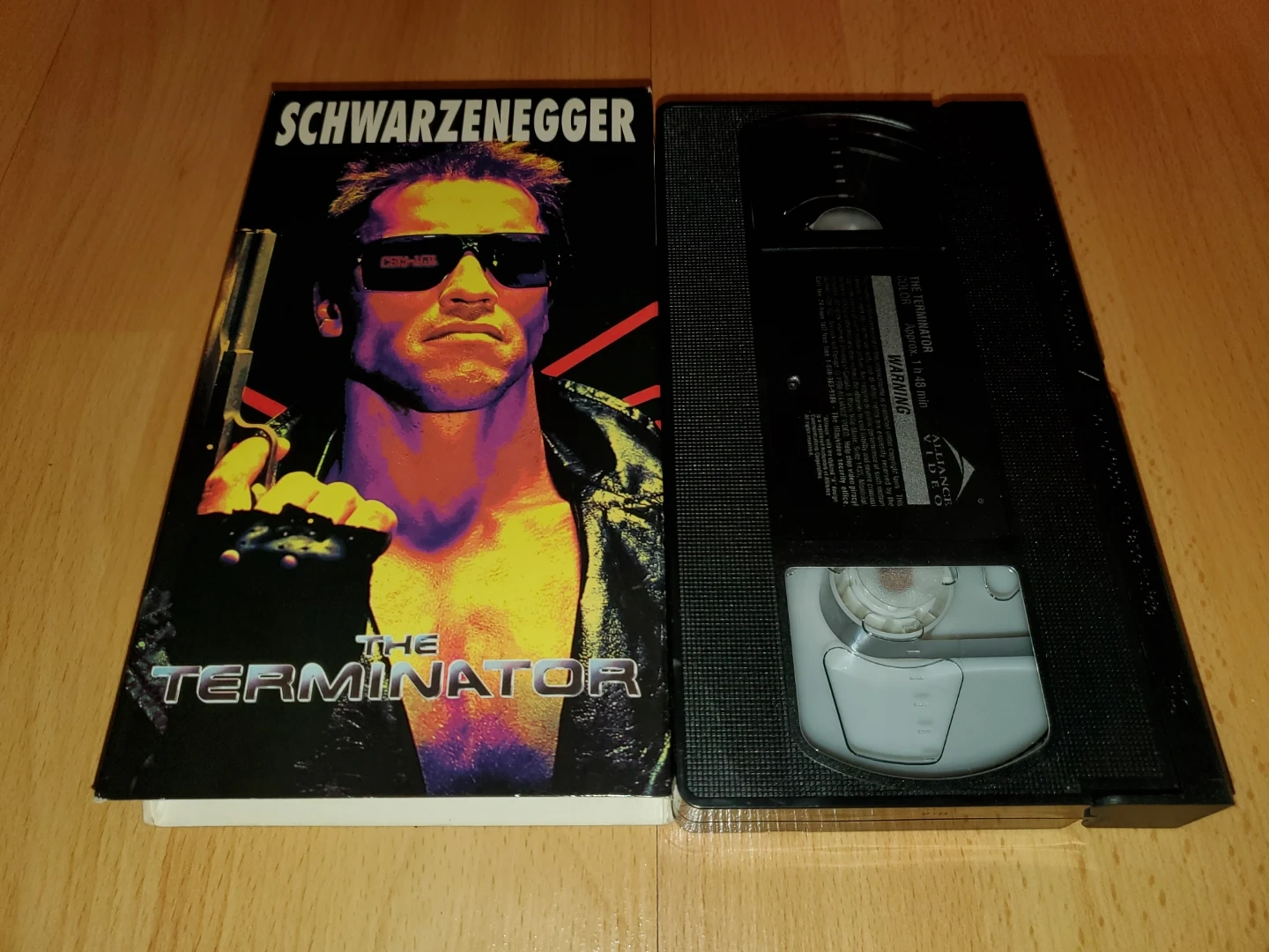 Terminator and Terminator 2: Judgment Day. Features Arnold Schwarzenegger and these are a nice addition to any Arnold Schwarzenegger or VHS collection.