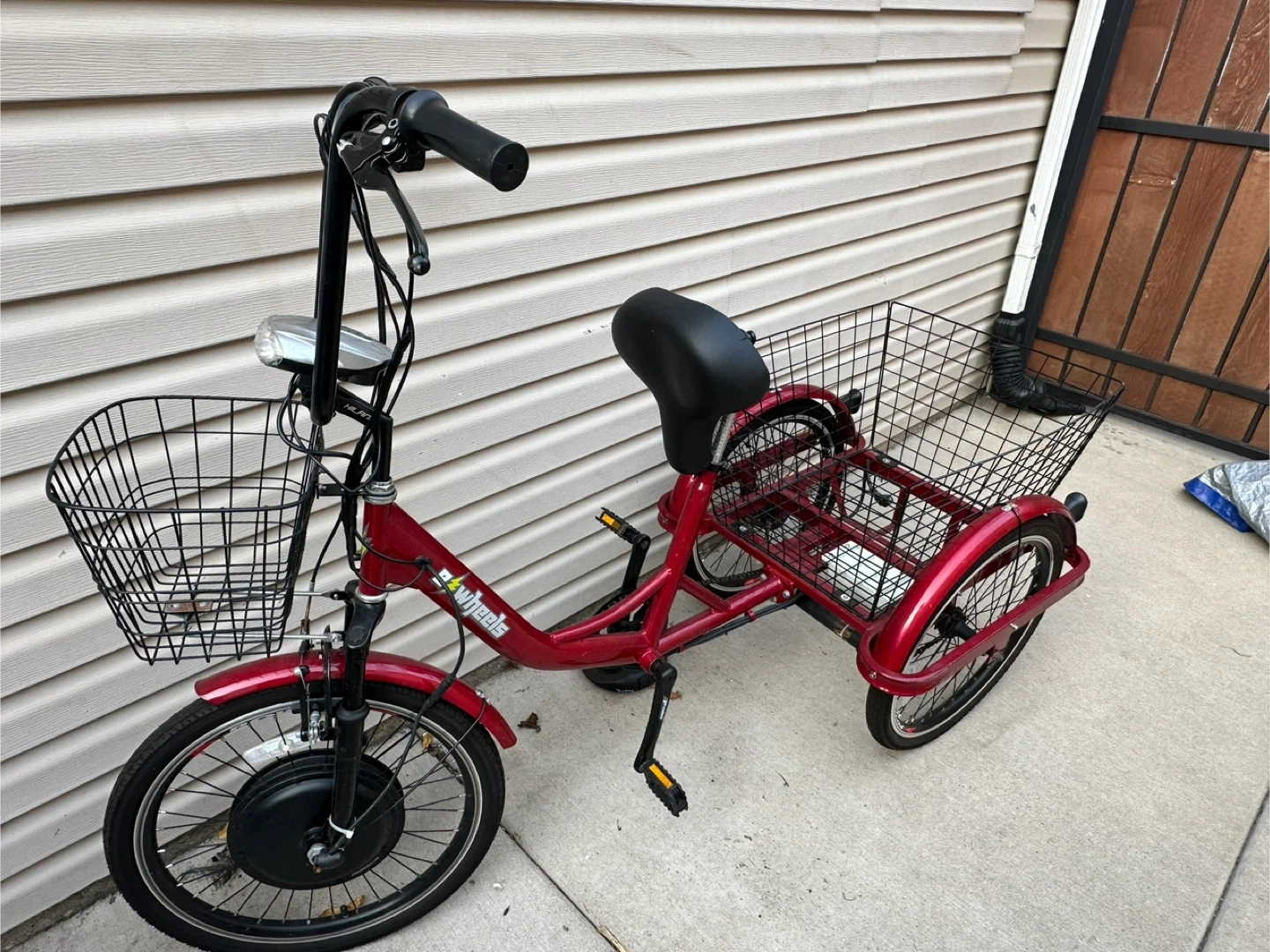E Wheels Red Electric Tricycle with Basket