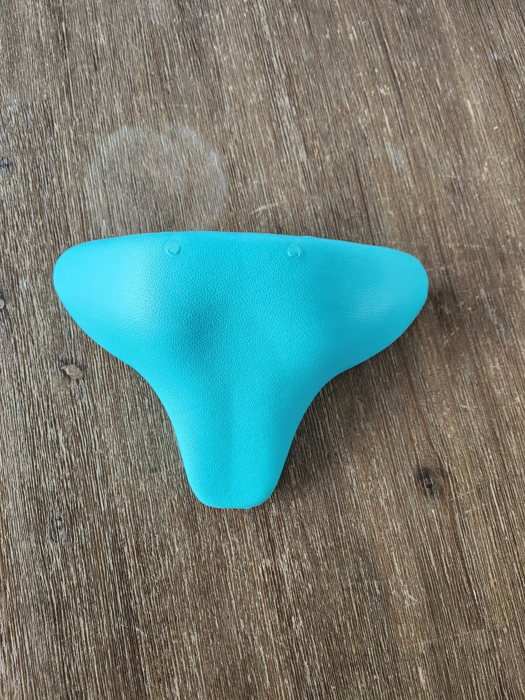 A teal massage tool for targeted pressure. It's made of a firm, textured material. This tool can help with muscle relief.