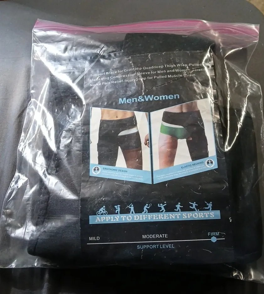 This is a compression sleeve designed for hip, quad, and thigh support. It's suitable for both men and women for nerve pain relief or injury support from pulled muscles. The brace offers adjustable support levels from mild to firm for different activities.