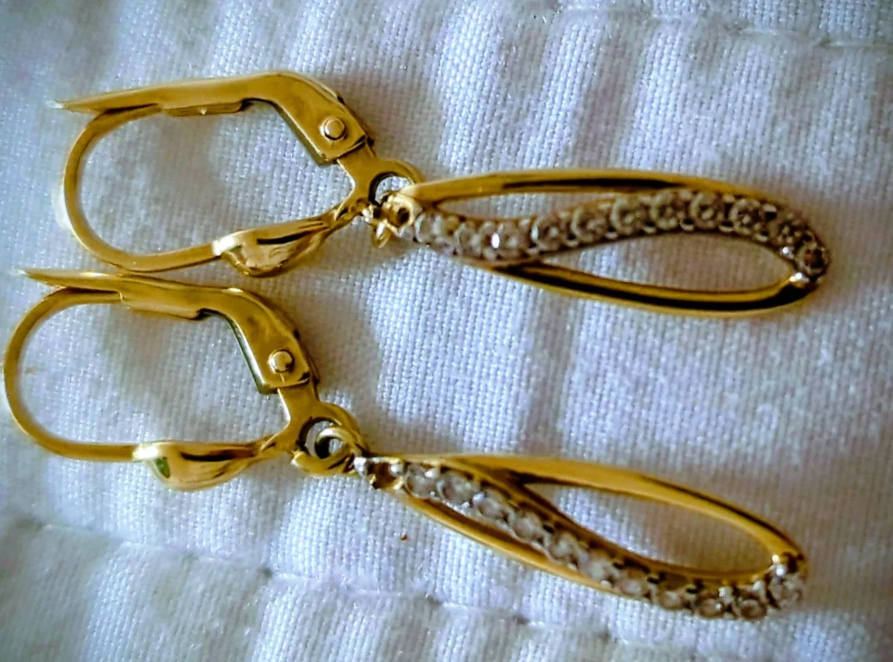 18k real Gold Dangle Earrings with Rhinestones