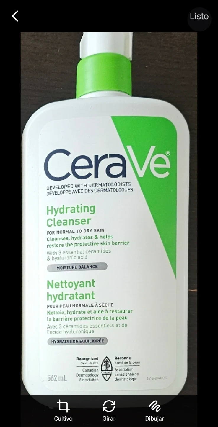 I bottles of CeraVe Hydrating Cleanser for normal to dry skin. Each bottle contains 562mL of cleanser. This cleanser is designed to cleanse, hydrate, and help restore the protective skin barrier with 3 essential ceramides and hyaluronic acid. It's also suitable for sensitive skin and is recognized by the Canadian Dermatology Association