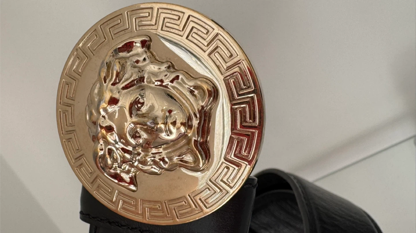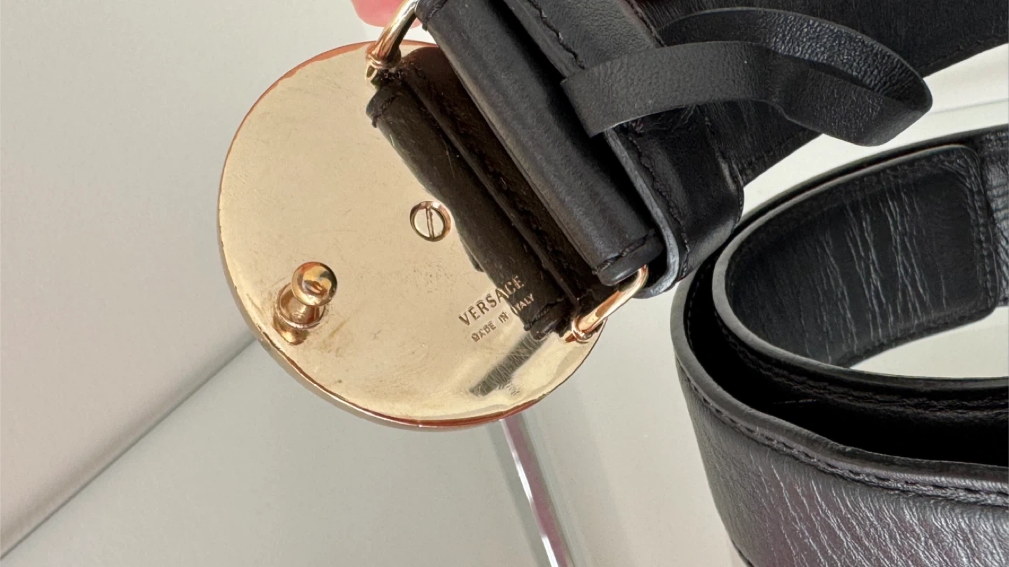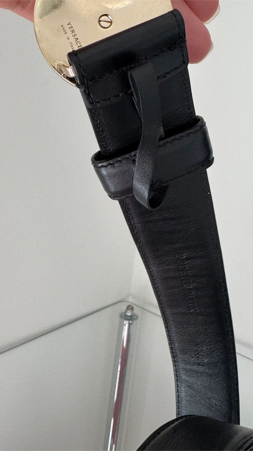 Versace Leather Medusa Belt Black Gold-Tone Buckle Women.