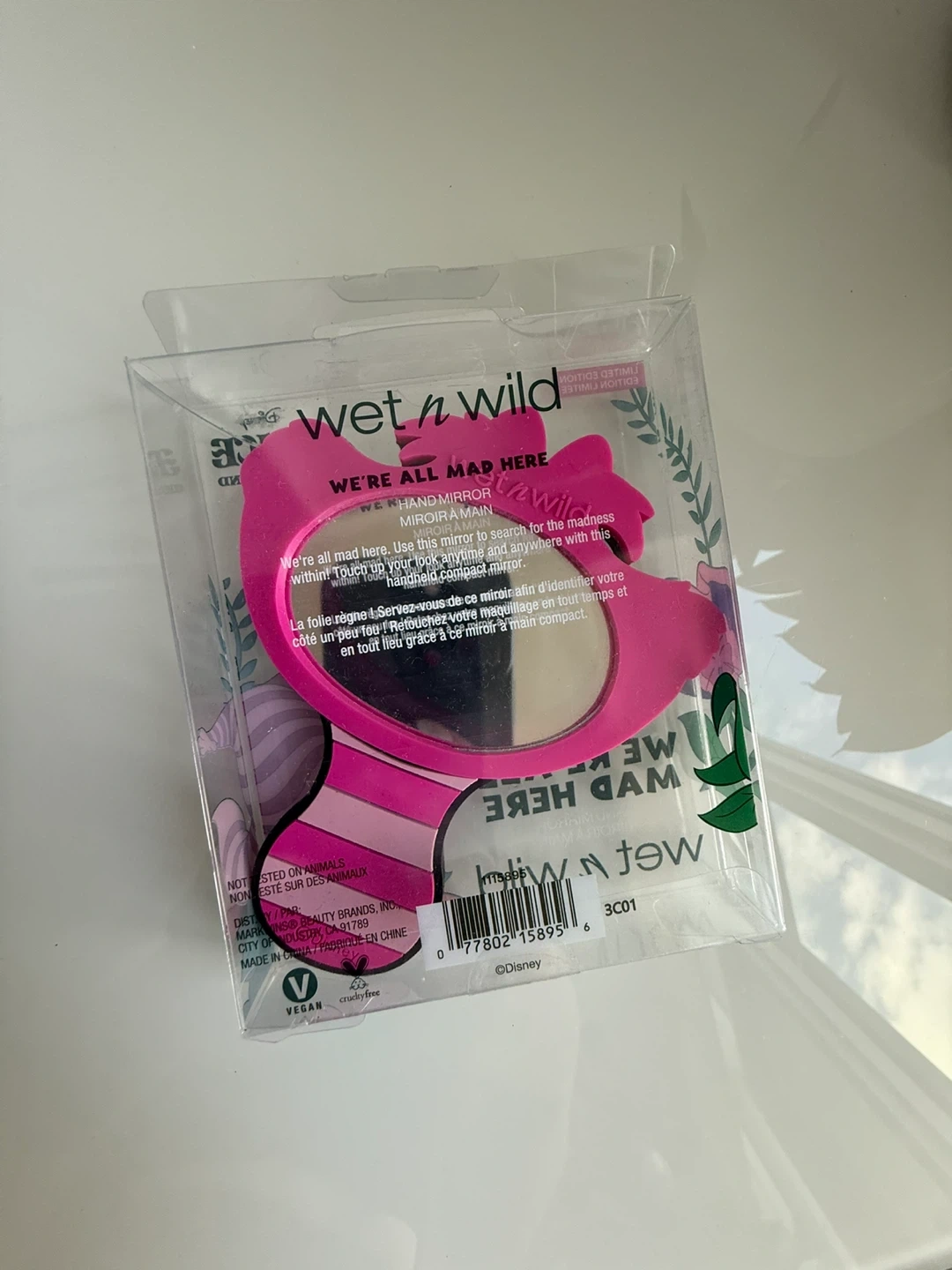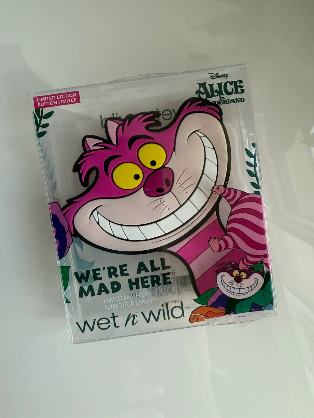 Selling a brand new Wet n Wild hand mirror from the Alice in Wonderland collection! It's a limited edition item featuring the Cheshire Cat. Perfect for touch-ups on the go!