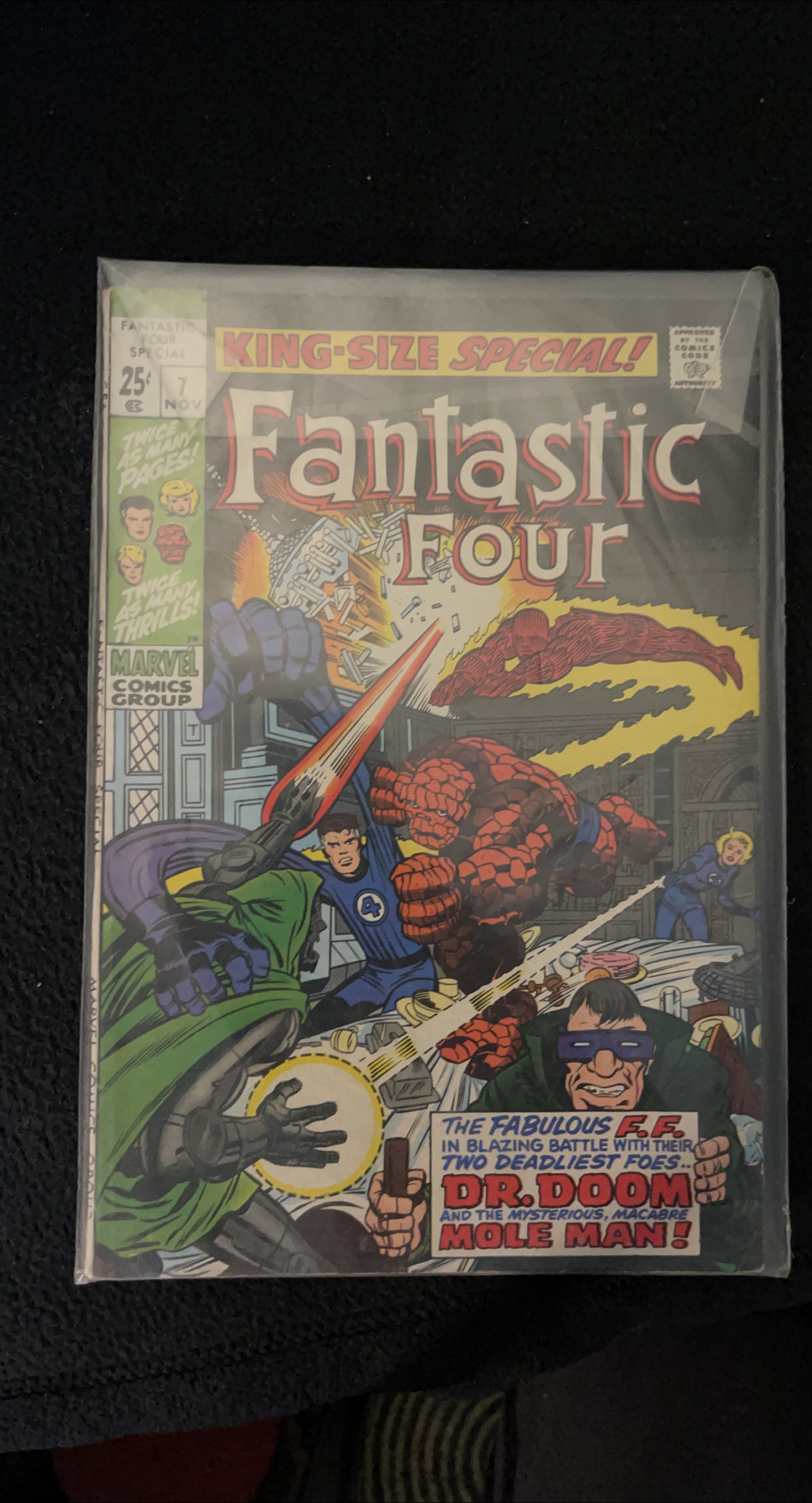 Selling a Fantastic Four King-Size Special #7 comic book. It's from Marvel Comics Group and features the Fabulous F.F. in a blazing battle with Dr. Doom and Mole Man! A great addition for any comic book collector