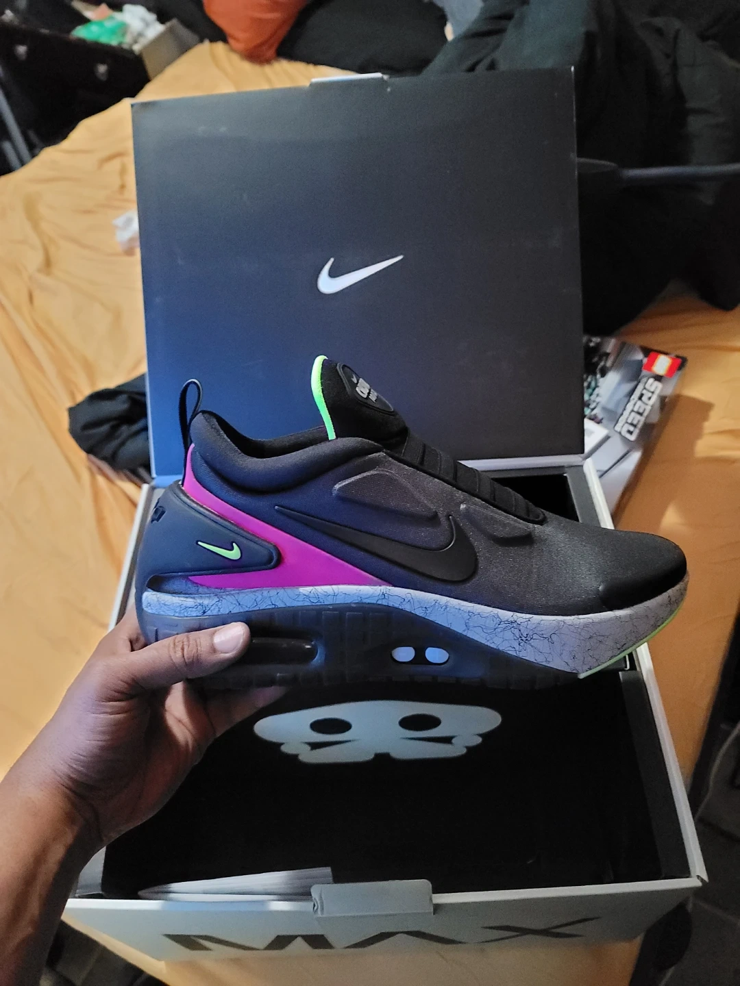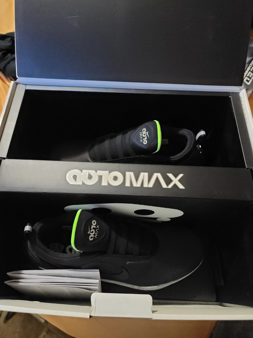 Nike Adapt Auto Max "Infrared" men's shoes in black. Thense innovative sneakers feature adaptive lacing technology. Includes original box and packaging.