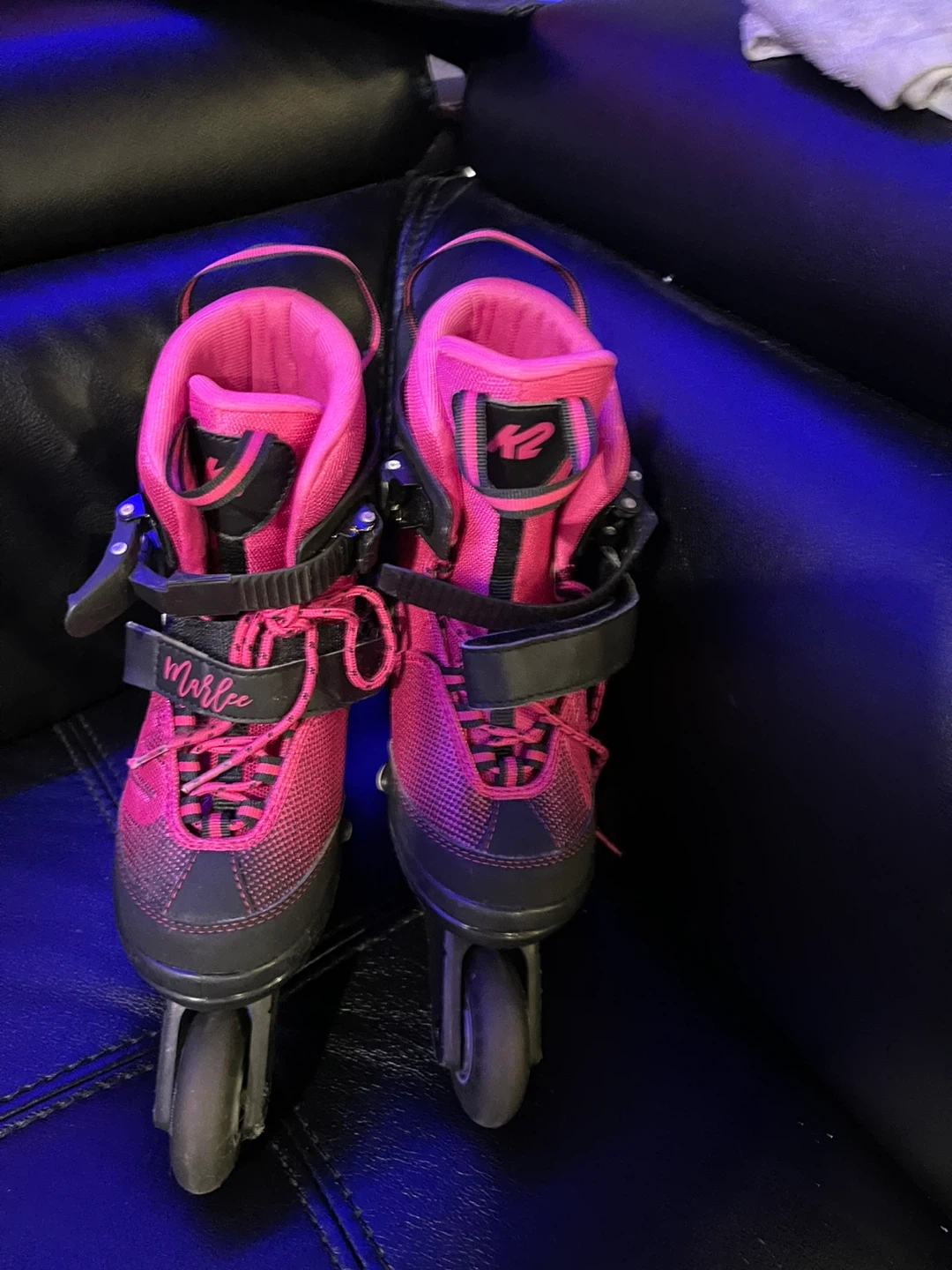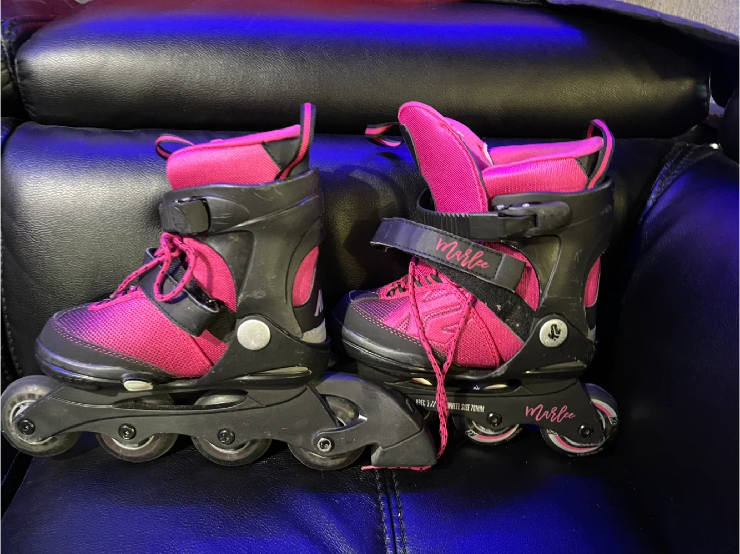 Selling a pair of K2 Marlee inline skates in pink and black. They are size US 1-5, UK 13-4, EUR 32-37, CM 19.5-23. Perfect for kids who are just starting out or still growing!