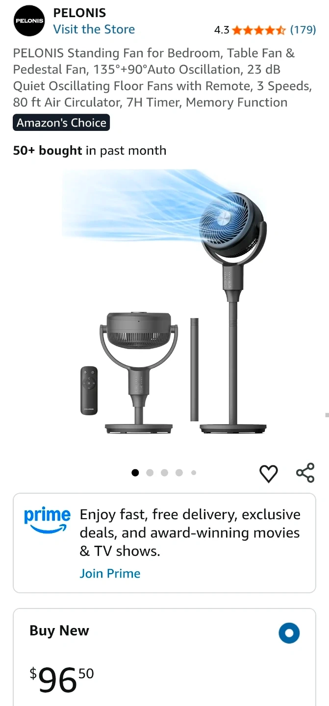 Keep cool with this PELONIS standing fan, perfect for any room! This fan features 135°+90° auto oscillation, a quiet 23 dB operation, 3 speeds, and a 7-hour timer, ensuring a comfortable environment. It also has a memory function to save your preferred settings. This item is in used condition, functions great.