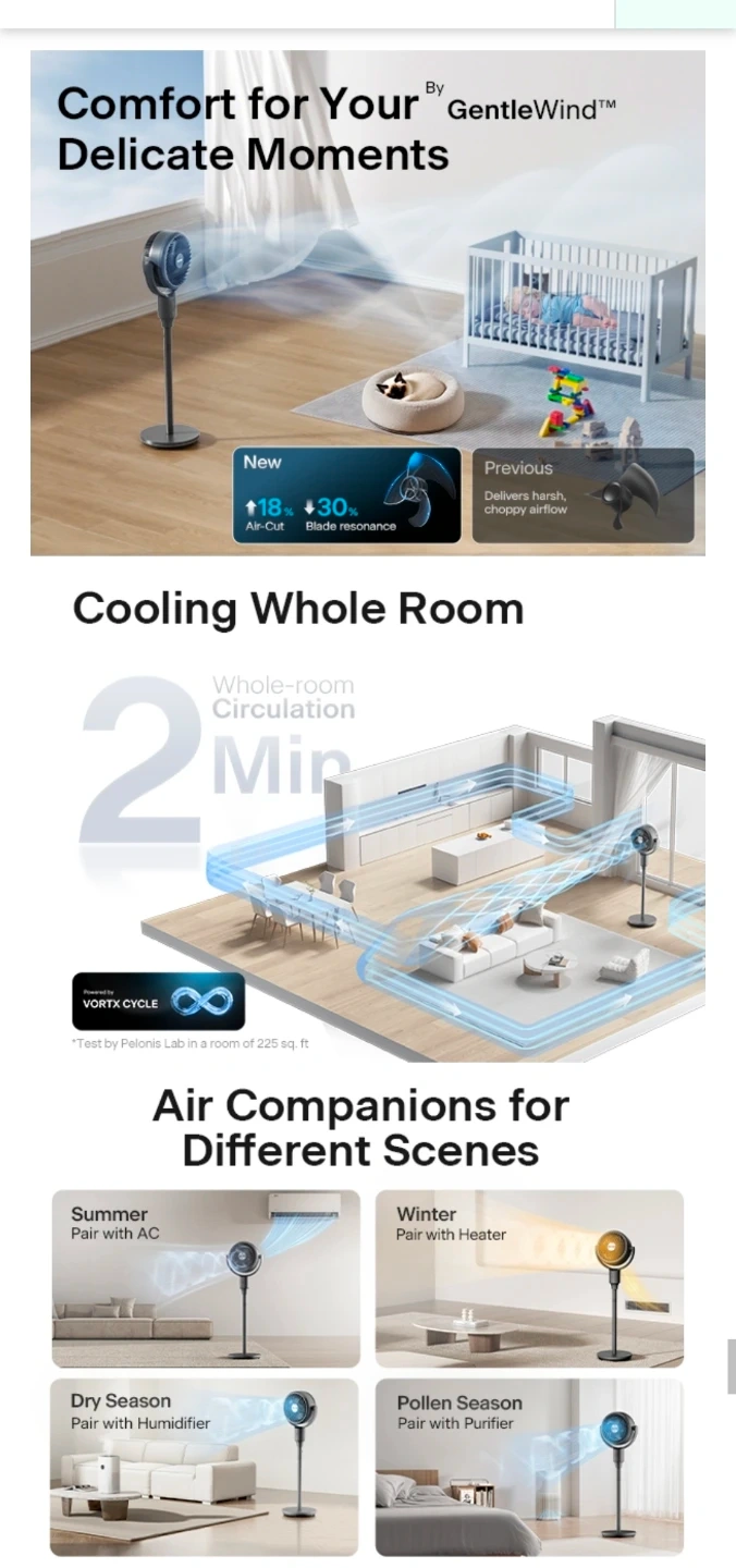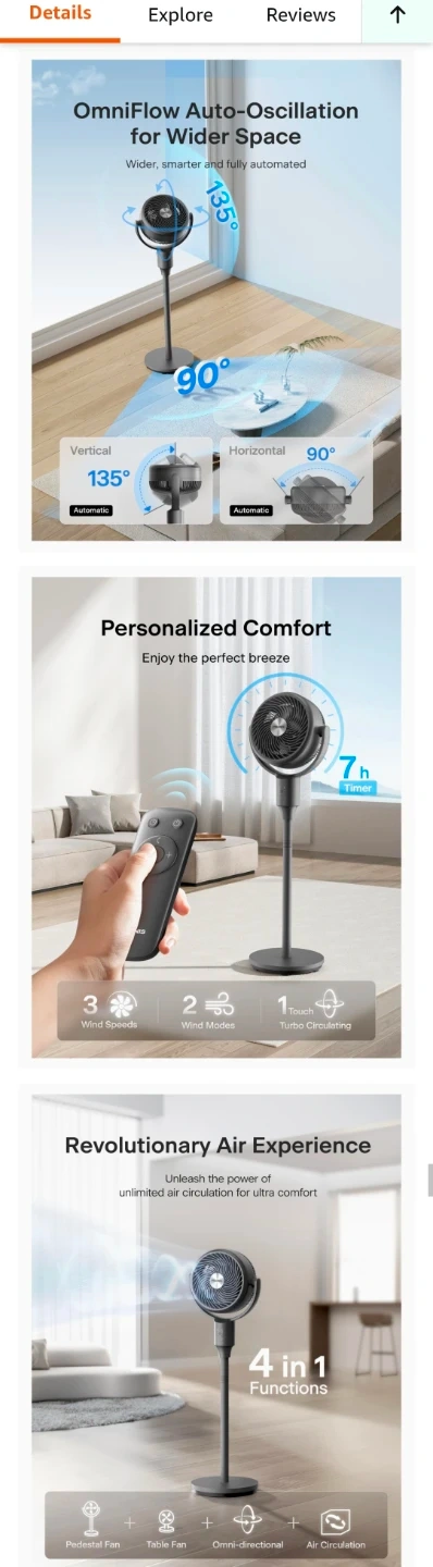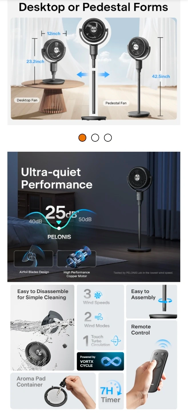 PELONIS Standing Fan for Bedroom, Table Fan & Pedestal Fan