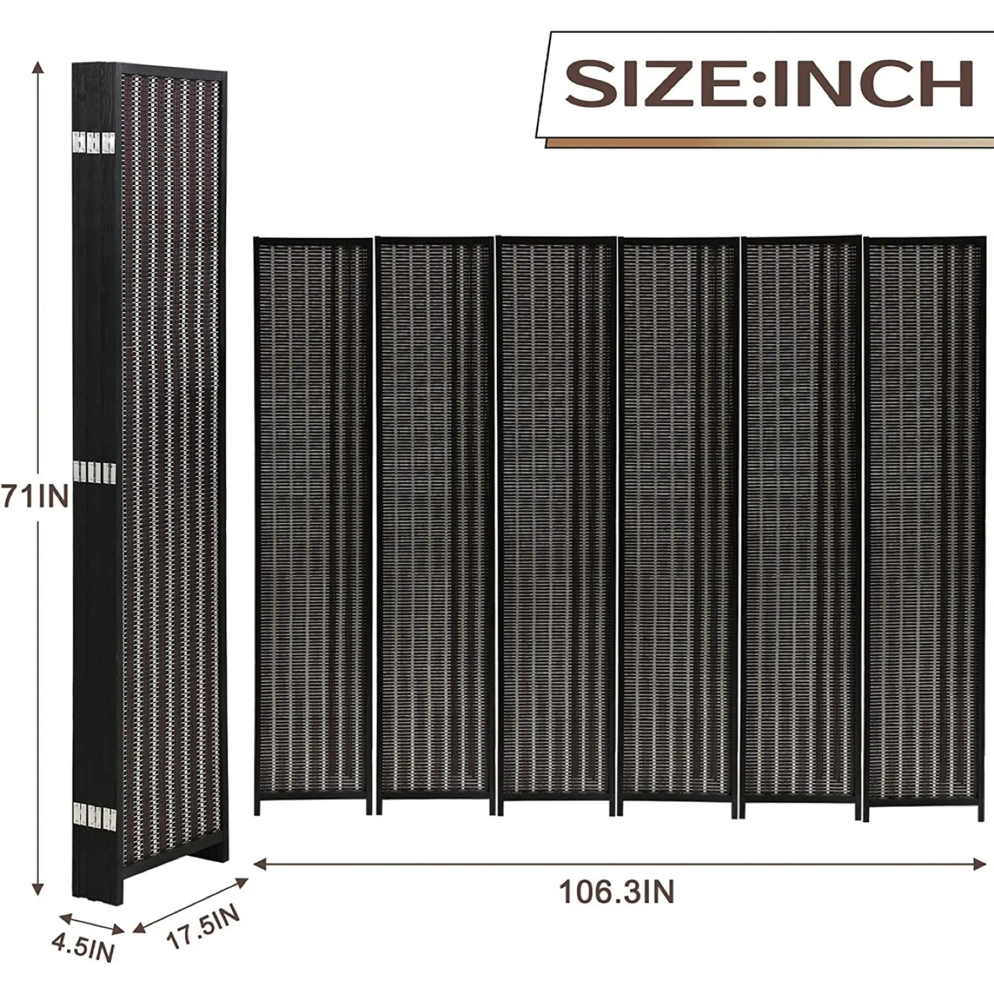 This is a 6-panel room divider screen. It's 72 inches tall and each panel is 17.5 inches wide. The screen's total width when fully extended is 106.3 inches. It's a nice way to divide up space!