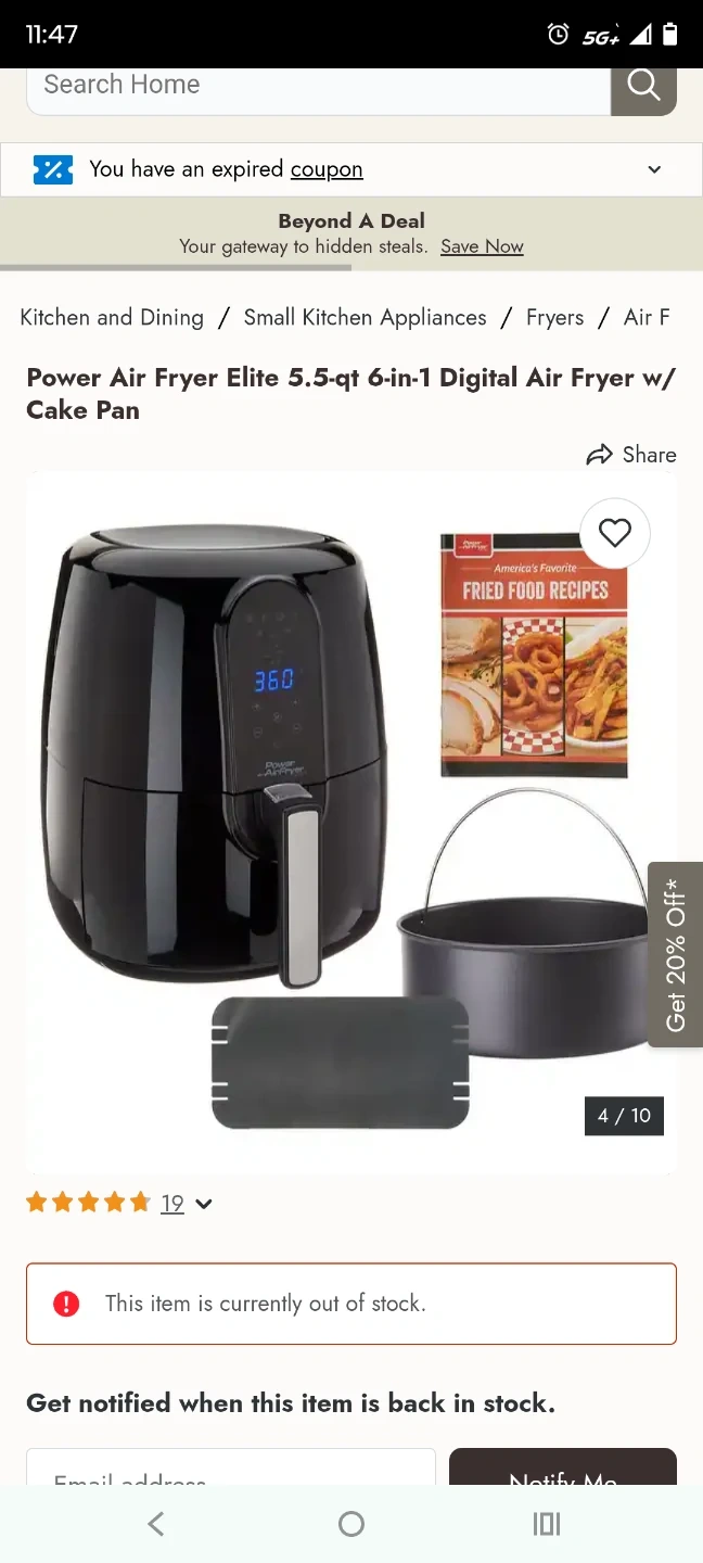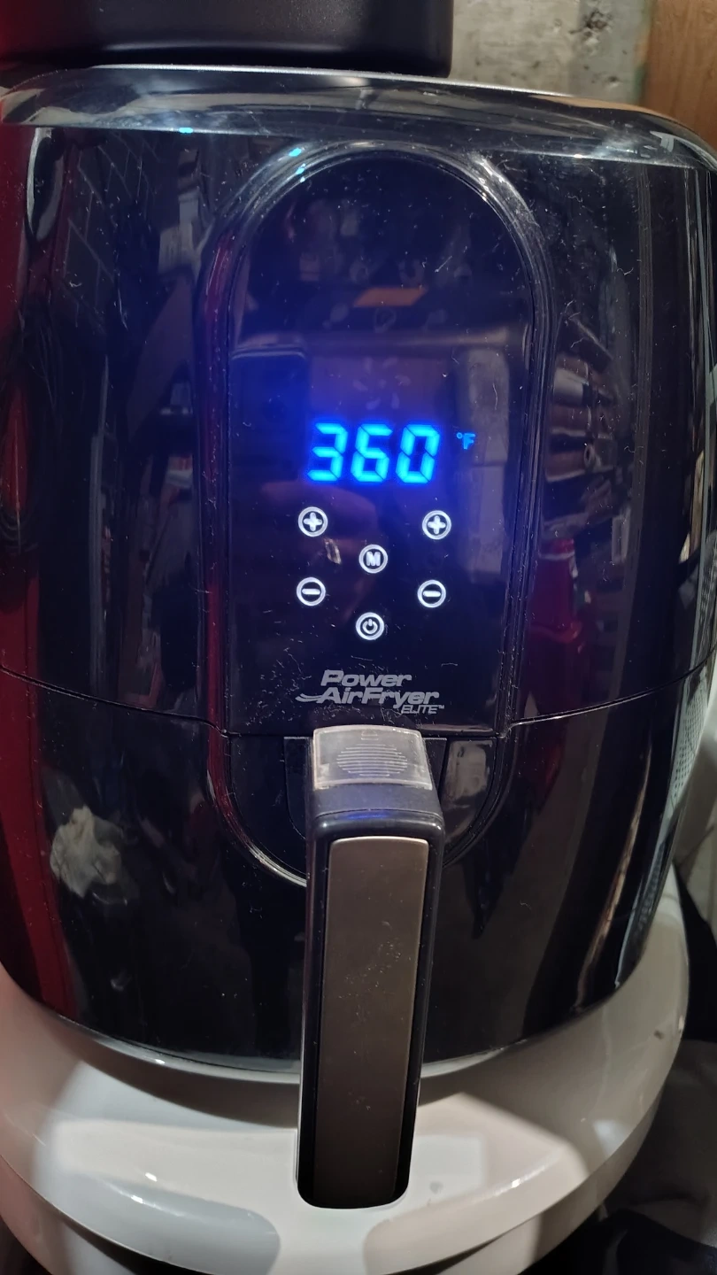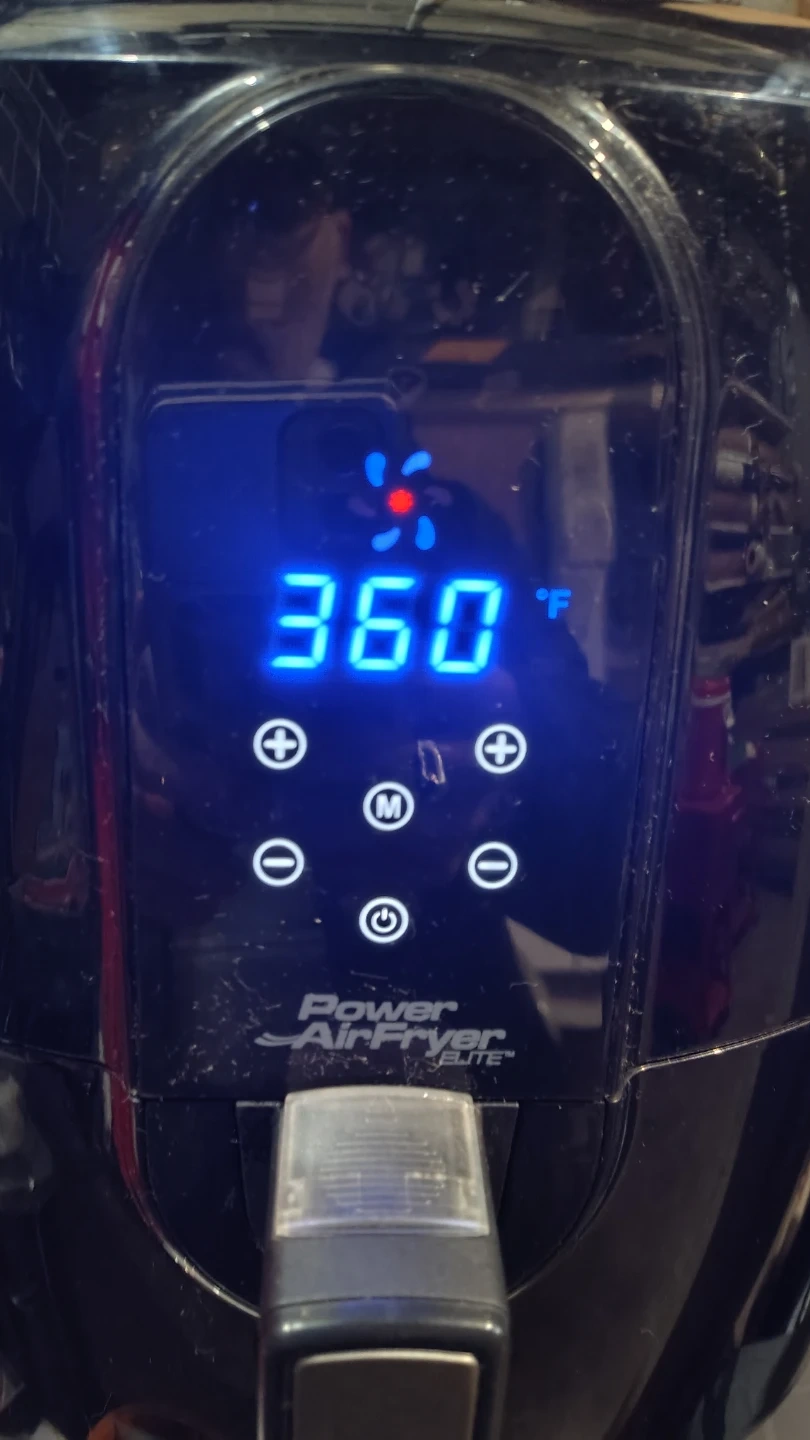 This Power AirFryer Elite is a 5.5-quart capacity digital air fryer. It offers a 6-in-1 functionality. The unit displays temperature up to 360°F.