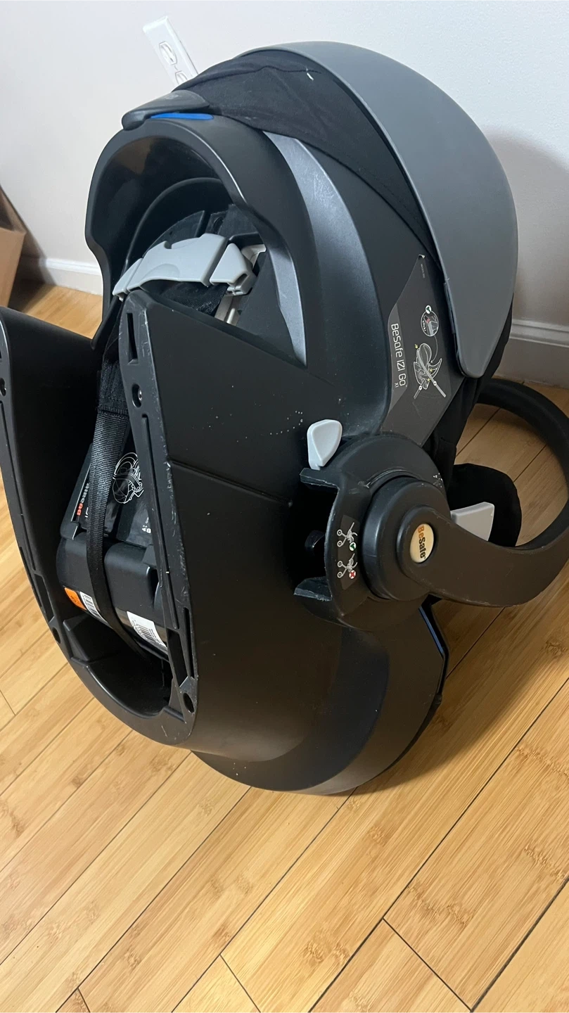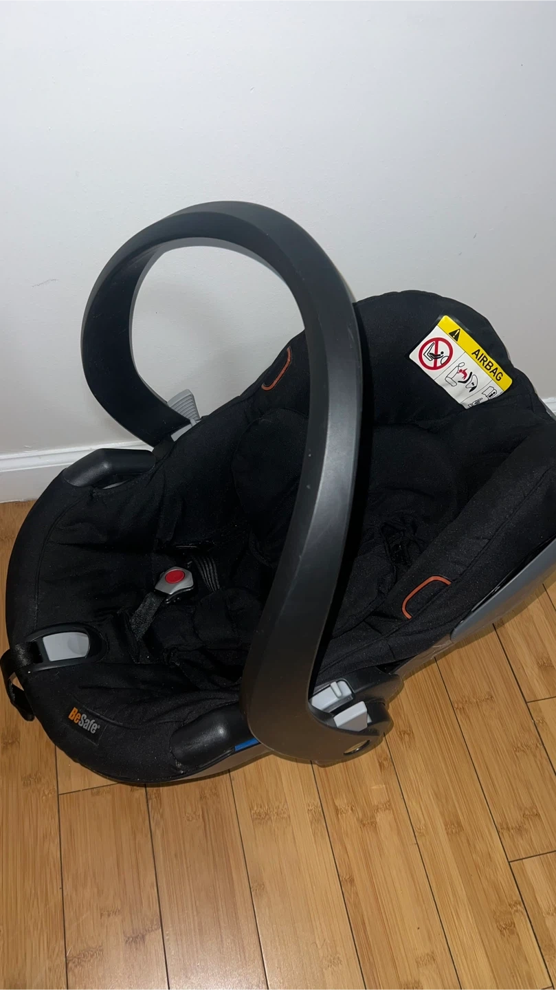 2 Black BeSafe infant car seat. It features a 5-point harness system for safety. The seat has an adjustable handle for easy carrying. Compatible with many strollers.