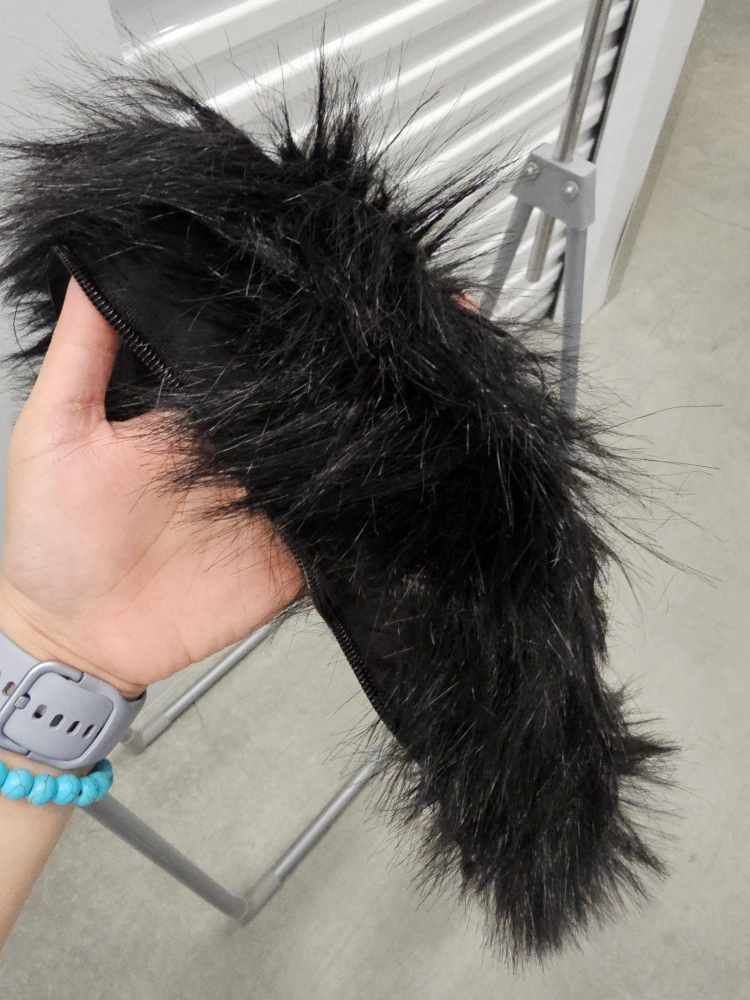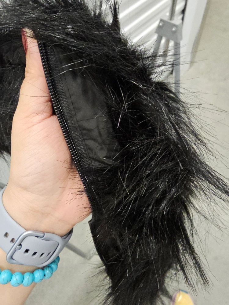 Black puffer jacket with fur lining. Size Medium. removable faux fur for the hood. decluttering .. perfect for the upcoming weather ..