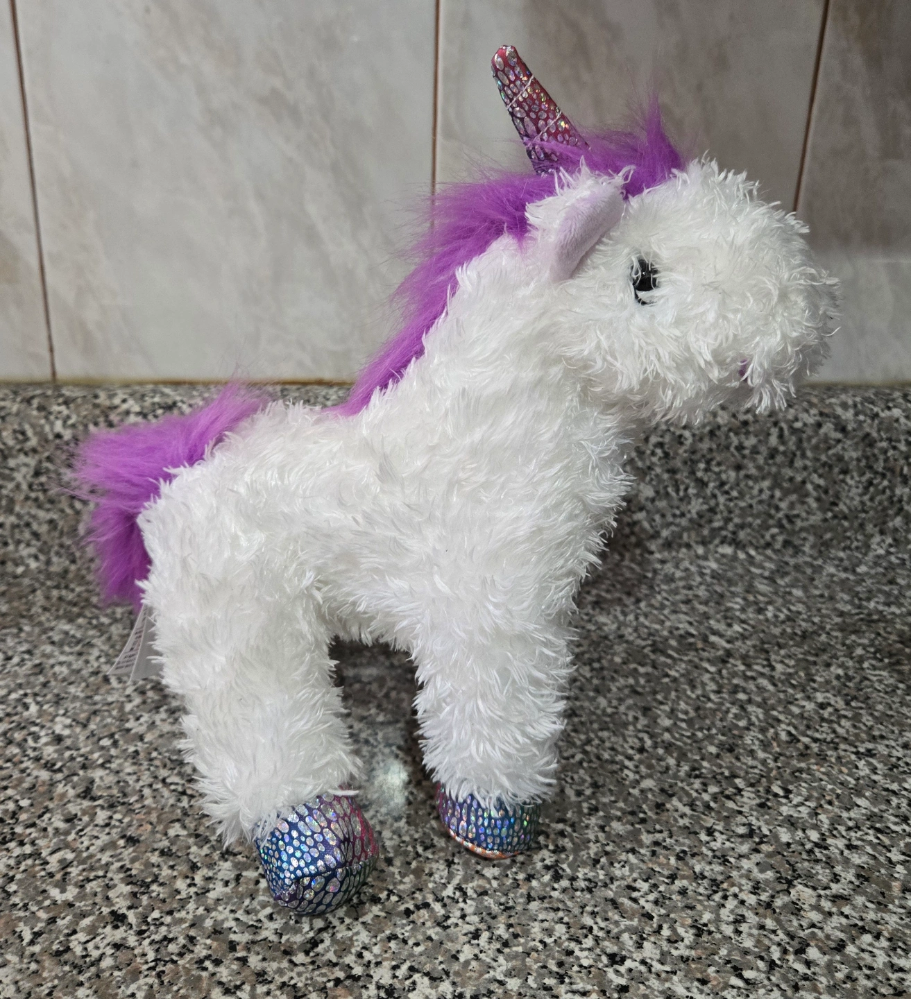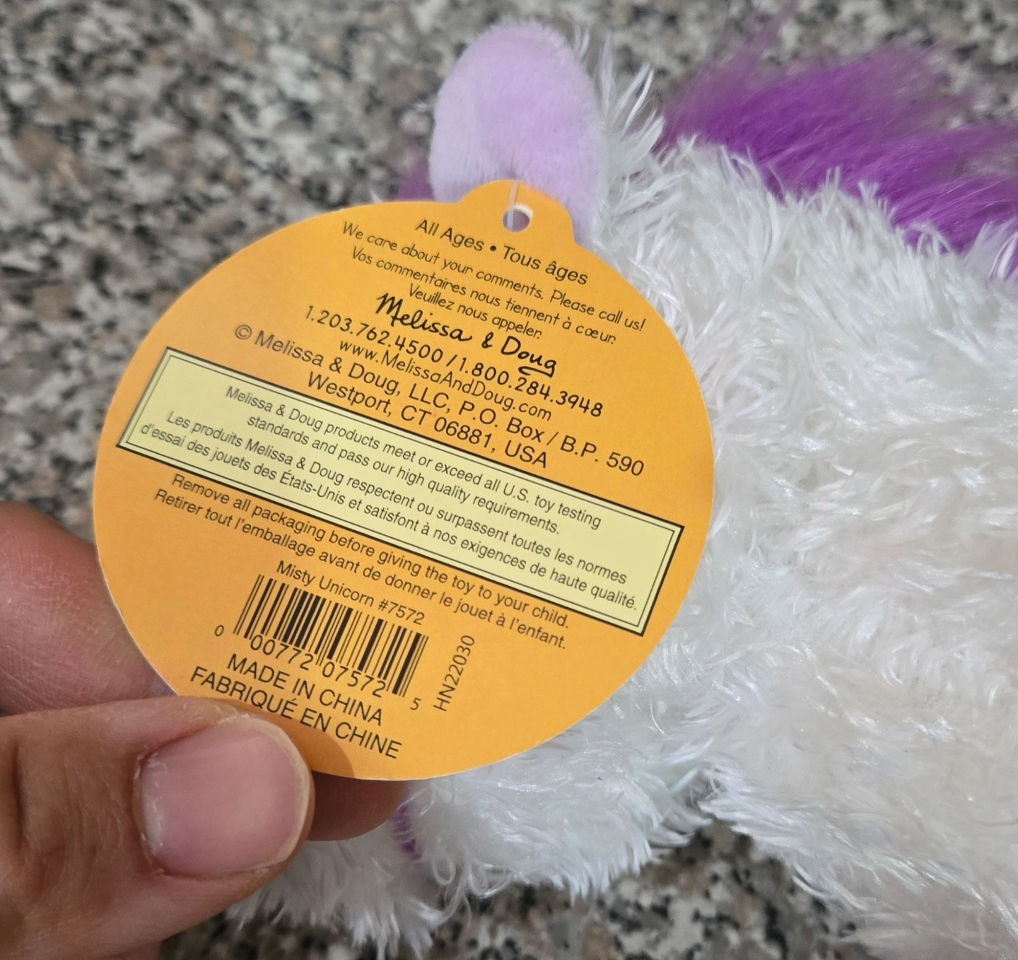 The new Melissa & Doug Misty Unicorn Plush #7572 is a small-sized stuffed animal designed for young children aged 1-4 years. Made by the reputable brand Melissa & Doug, this cute and cuddly unicorn plush is perfect for little ones who love princess fairytale themes. With its lovely white color and purple hair design, this toy is sure to delight young children and make for a wonderful addition to any imaginative playtime. Made in China, this plush toy is a charming choice for young children to enjoy.