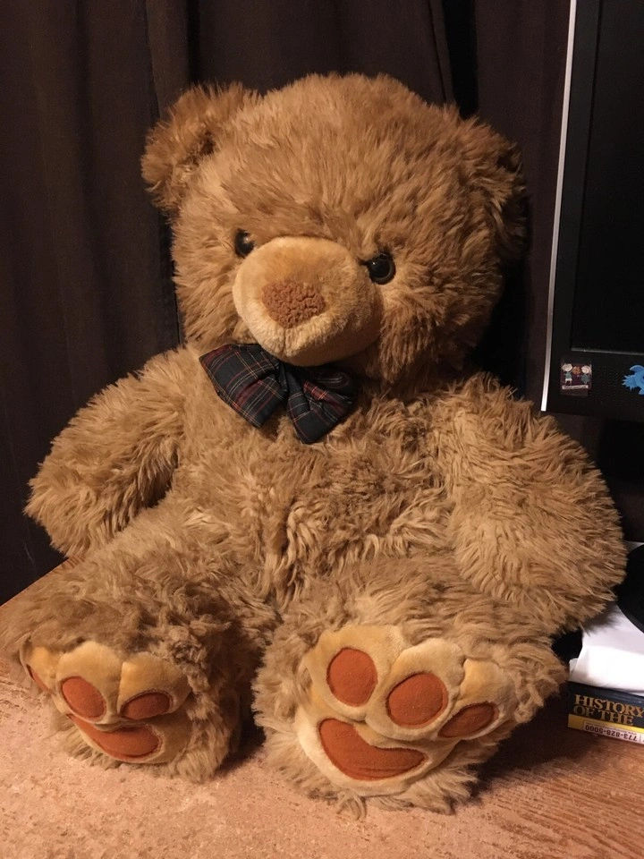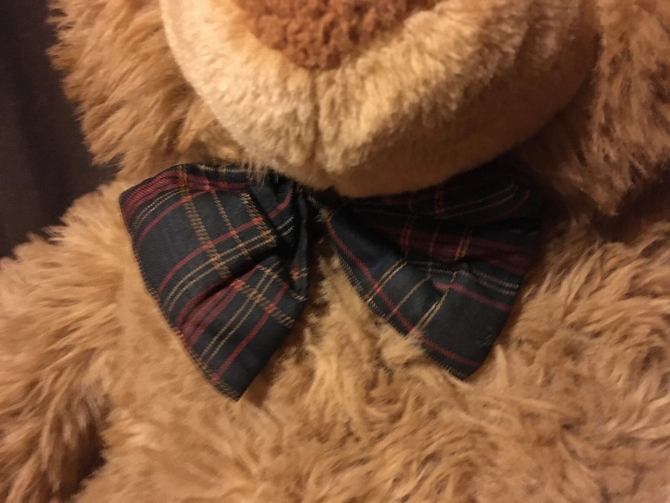 Selling a cute brown plush teddy bear! It has a nice bowtie and is in great condition. It's a soft and cuddly friend for anyone good condition weighs about 4 and 1/2 lb pick up at house