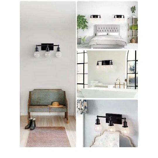 2 Pack 3-Light Industrial Black Wall Sconce Light Fixture