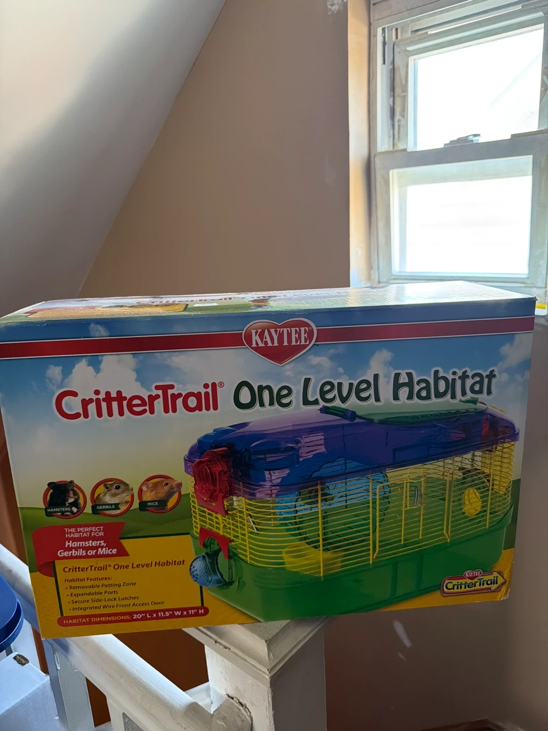 This Kaytee CritterTrail One Level Habitat is perfect for small pets like hamsters, gerbils, or mice. It features a removable petting zone, expandable ports, secure side-lock latches, and an integrated wire front access door. Habitat dimensions are 20" L x 11.5" W x 11" H.