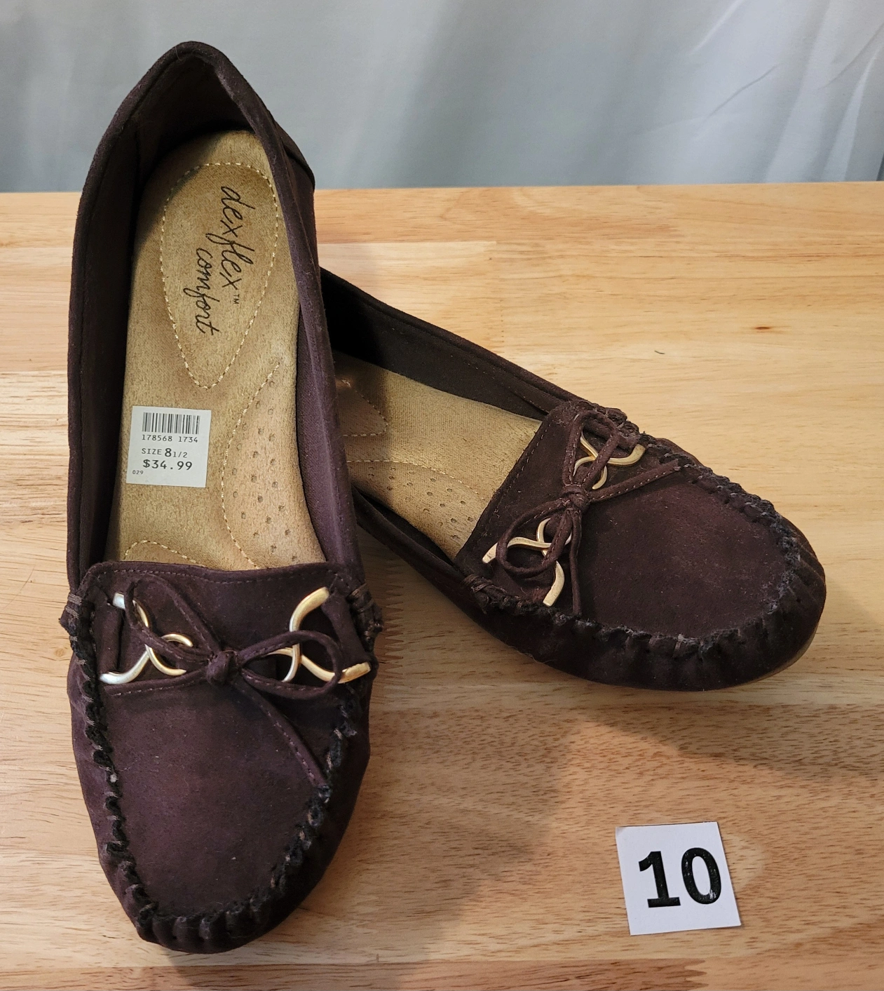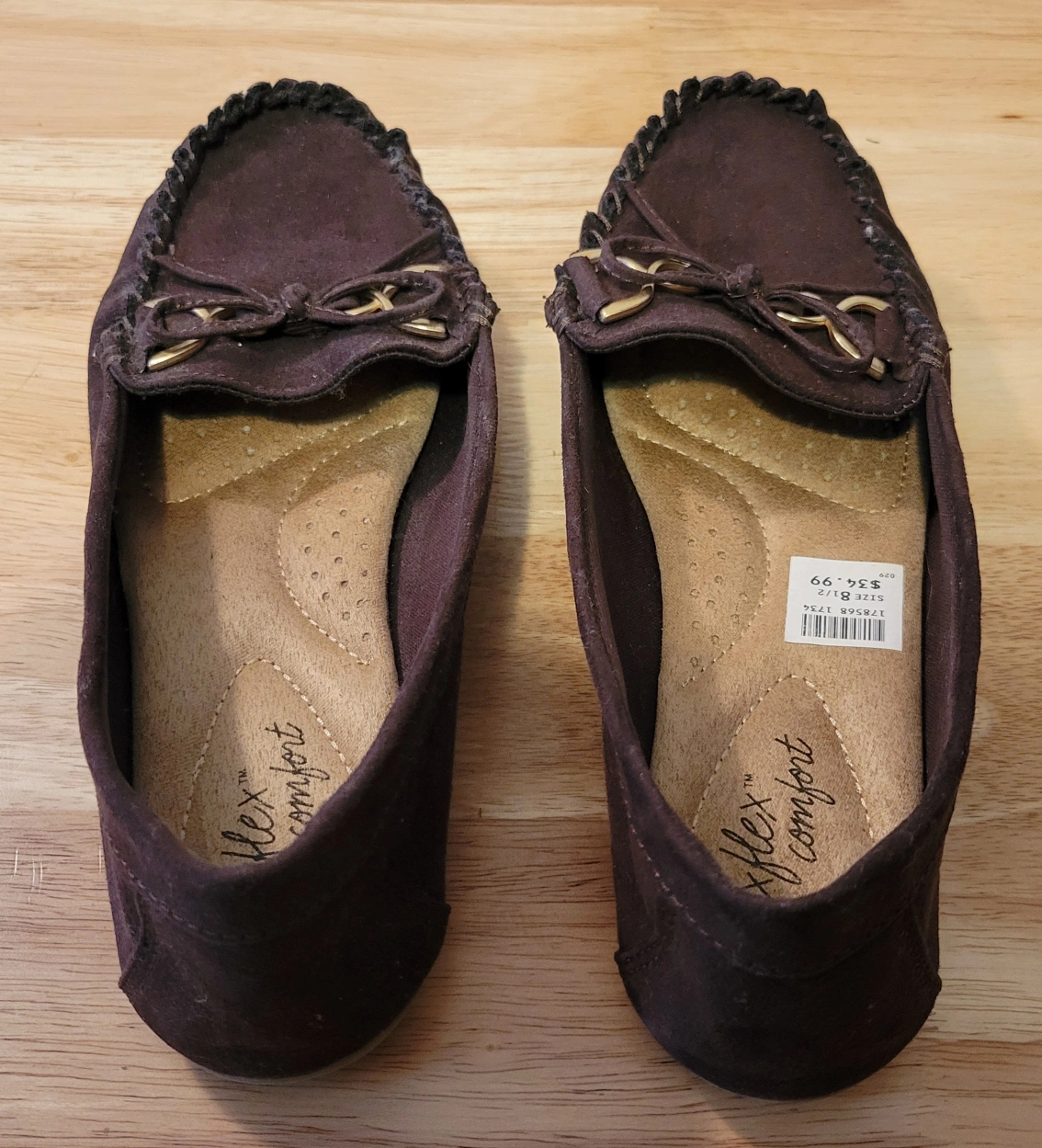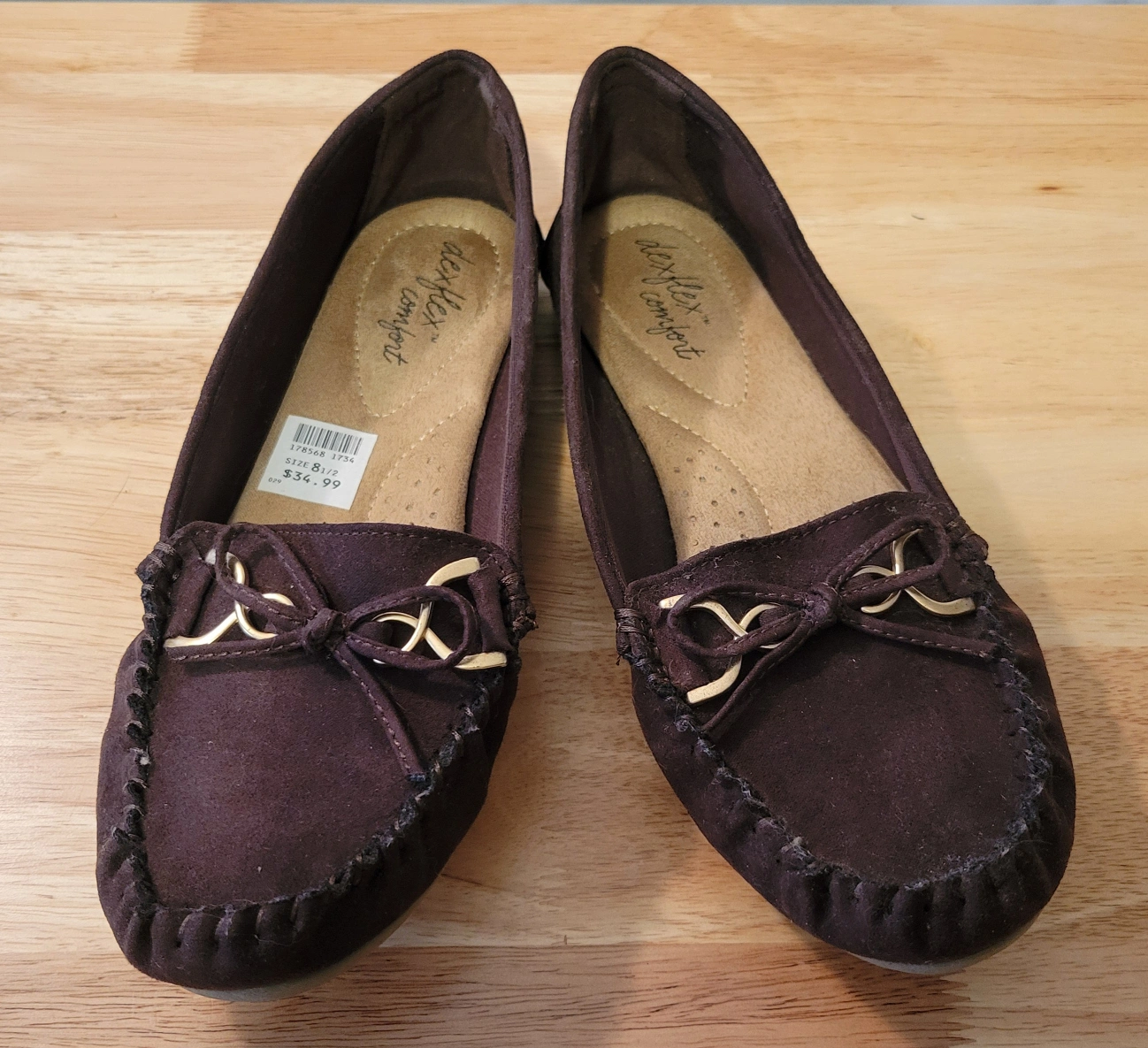 Selling a pair of Dexflex Comfort loafers in a lovely brown color! They are a size 8. These comfortable shoes feature a stylish design with a decorative bow. Originally bought for $34.99