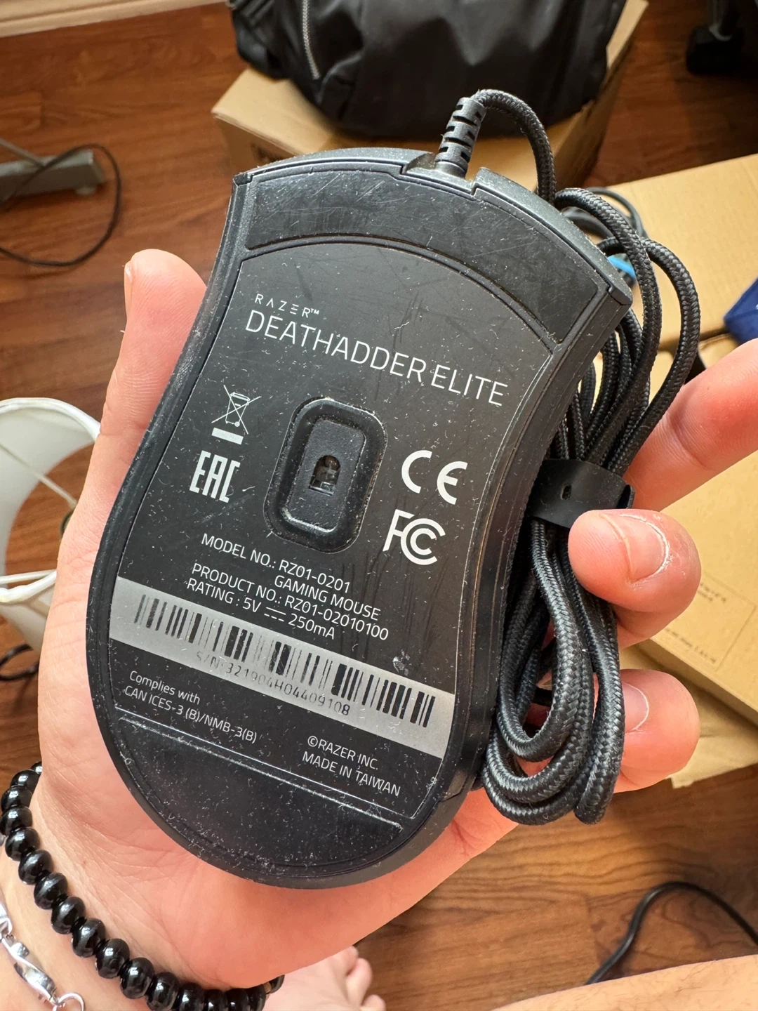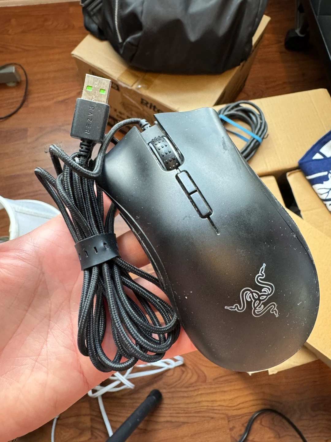 Selling a Razer DeathAdder Elite gaming mouse. It comes with its original box and is in good condition. The mouse is black and includes the cable. It's a great mouse for gaming!