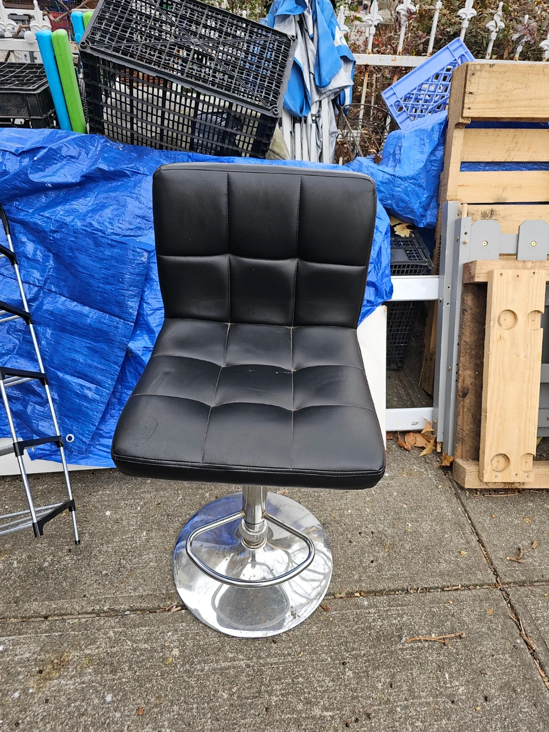 Selling a black bar stool with an adjustable height. It features a padded seat and a chrome base. Perfect for your kitchen or bar area!