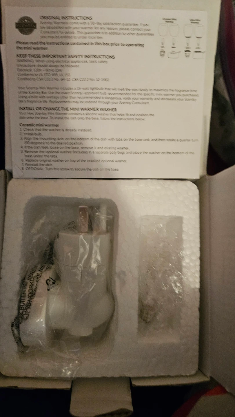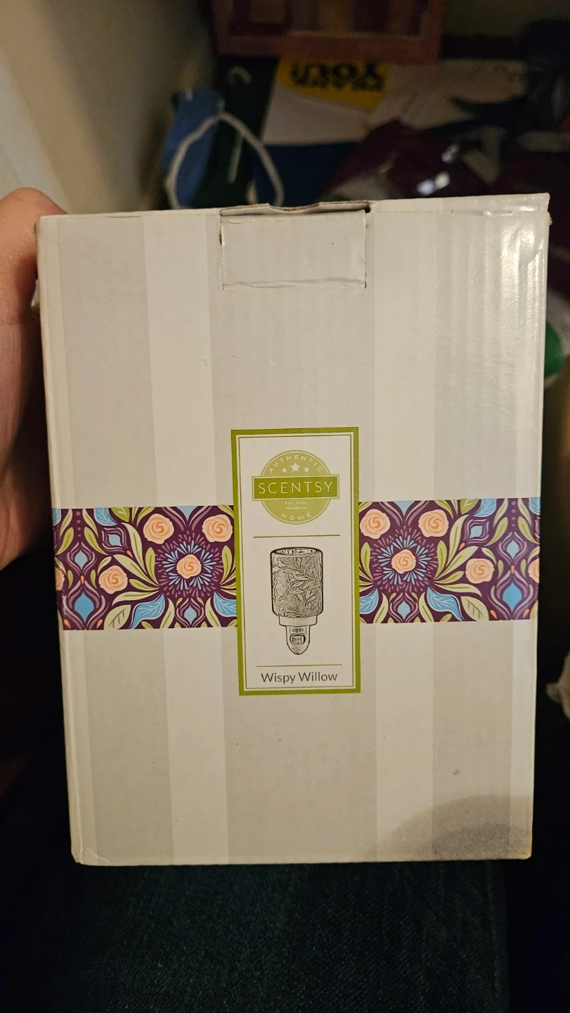 Scentsy Home plug-in mini warmer in Wispy Willow design. Includes a Scentsy Bar in Clean Breeze scent. This warmer plugs into any outlet to gently melt Scentsy wax.