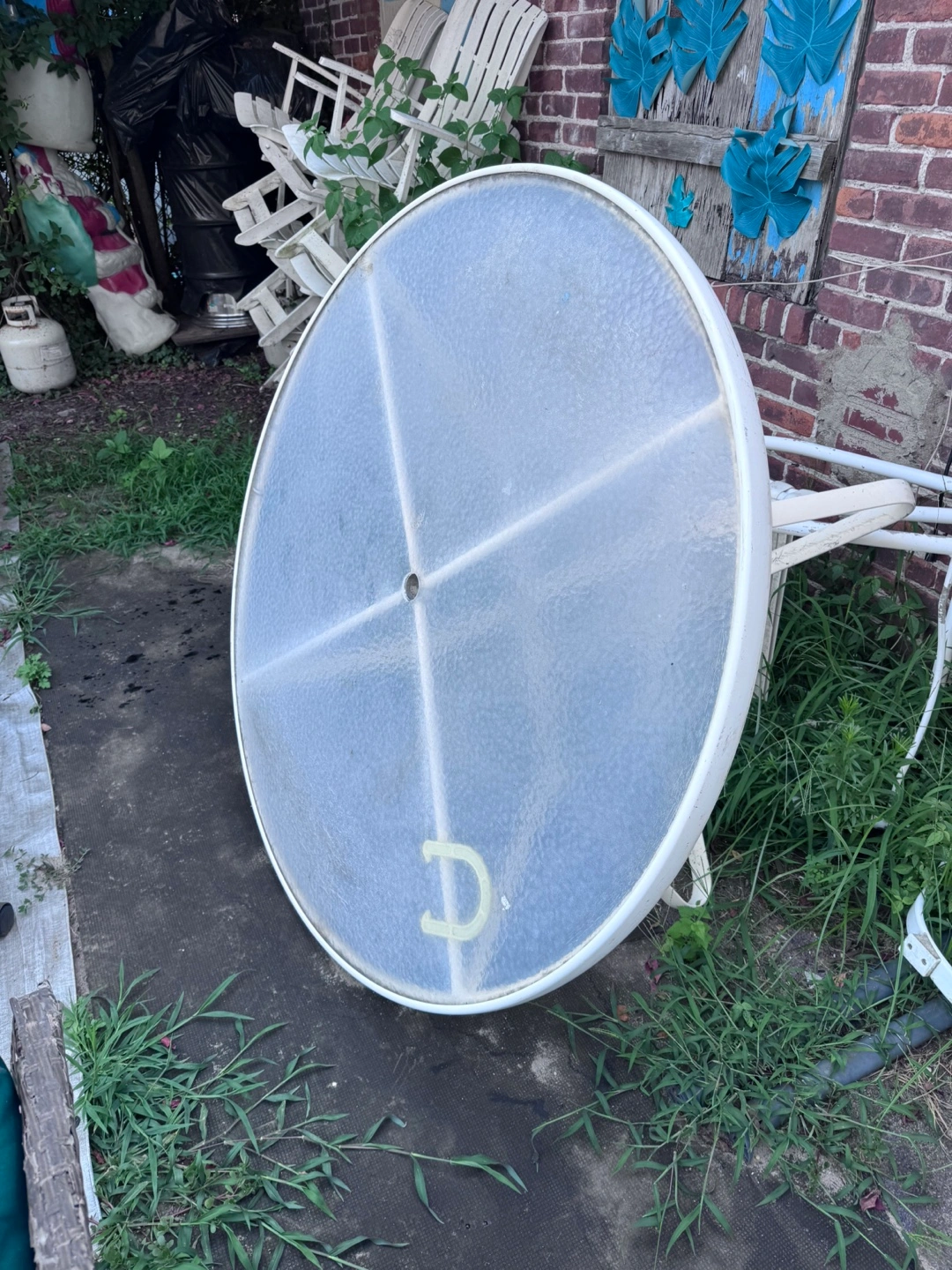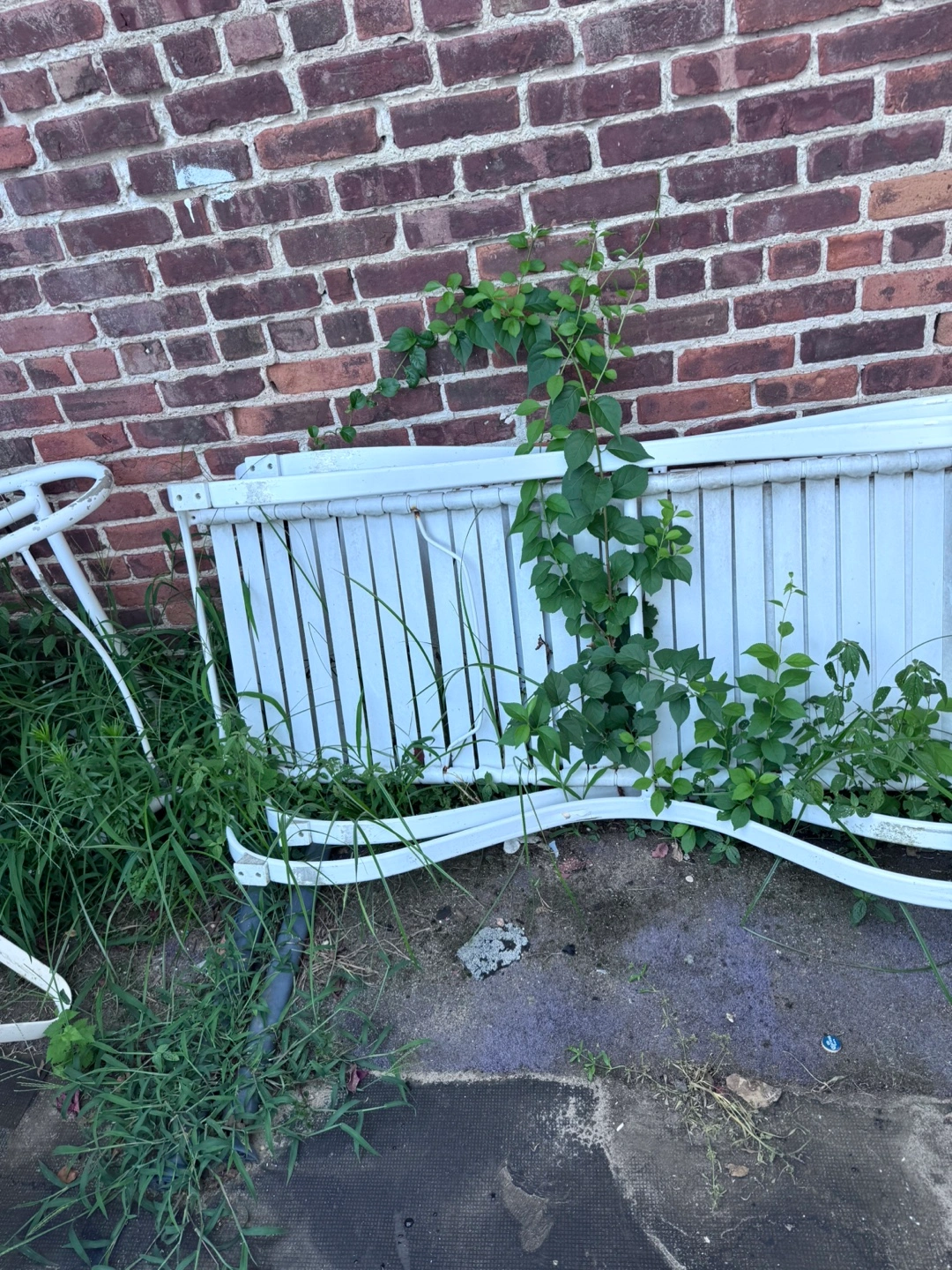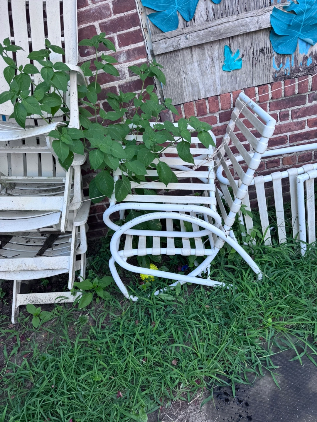 Selling an outdoor white metal patio furniture set. It's showing signs of wear and could use some TLC, but it's still functional. Perfect for a DIY project or someone looking for affordable outdoor seating