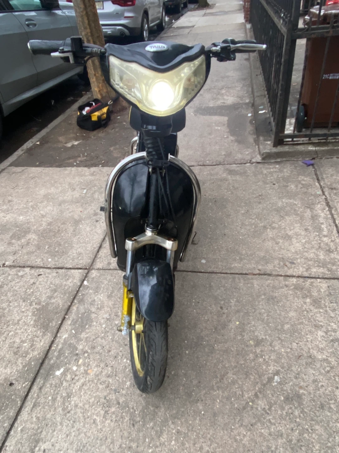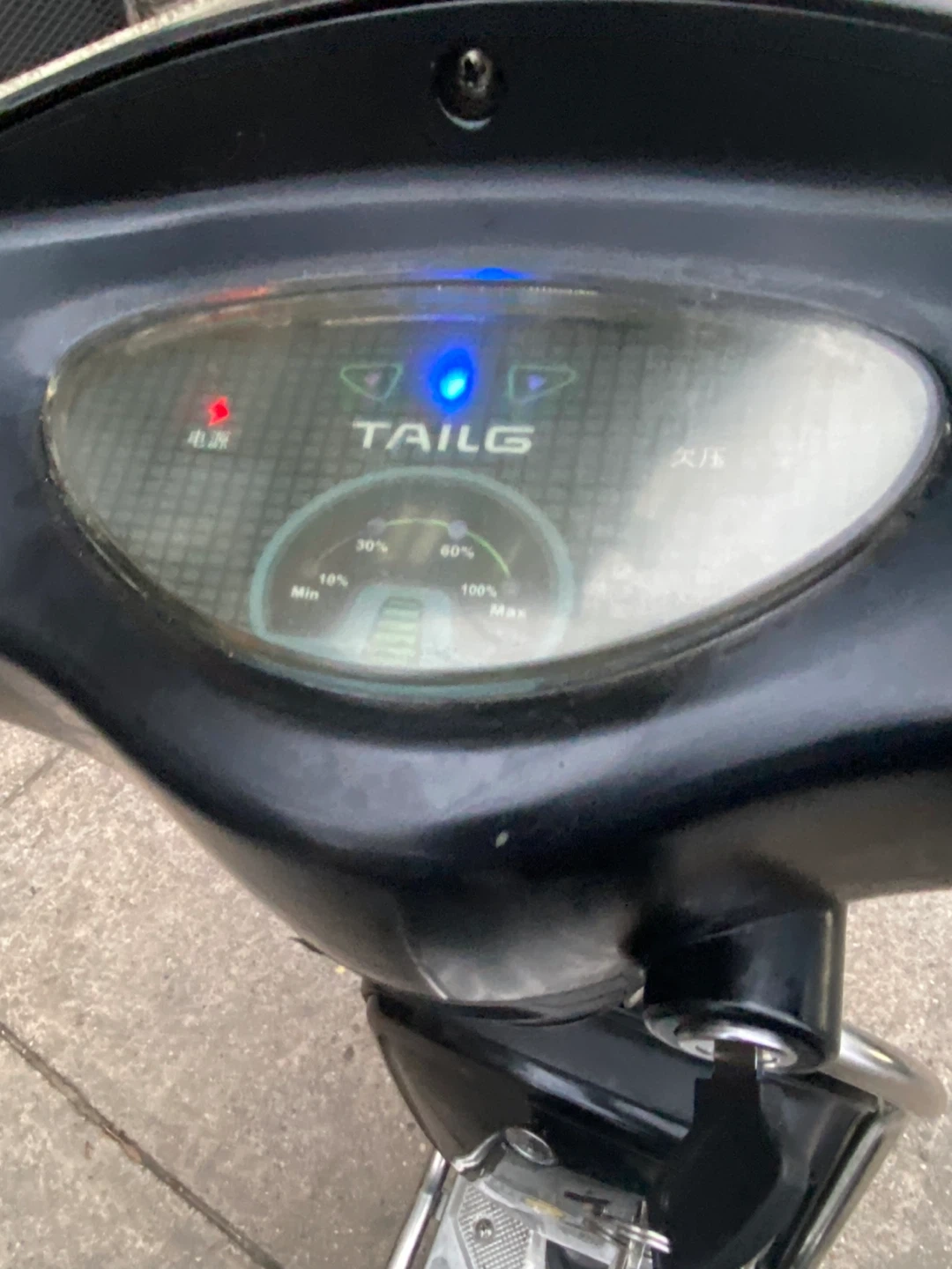 This is a black TAILG electric scooter. It features a digital display with battery indicator and lights. Ready for rides!