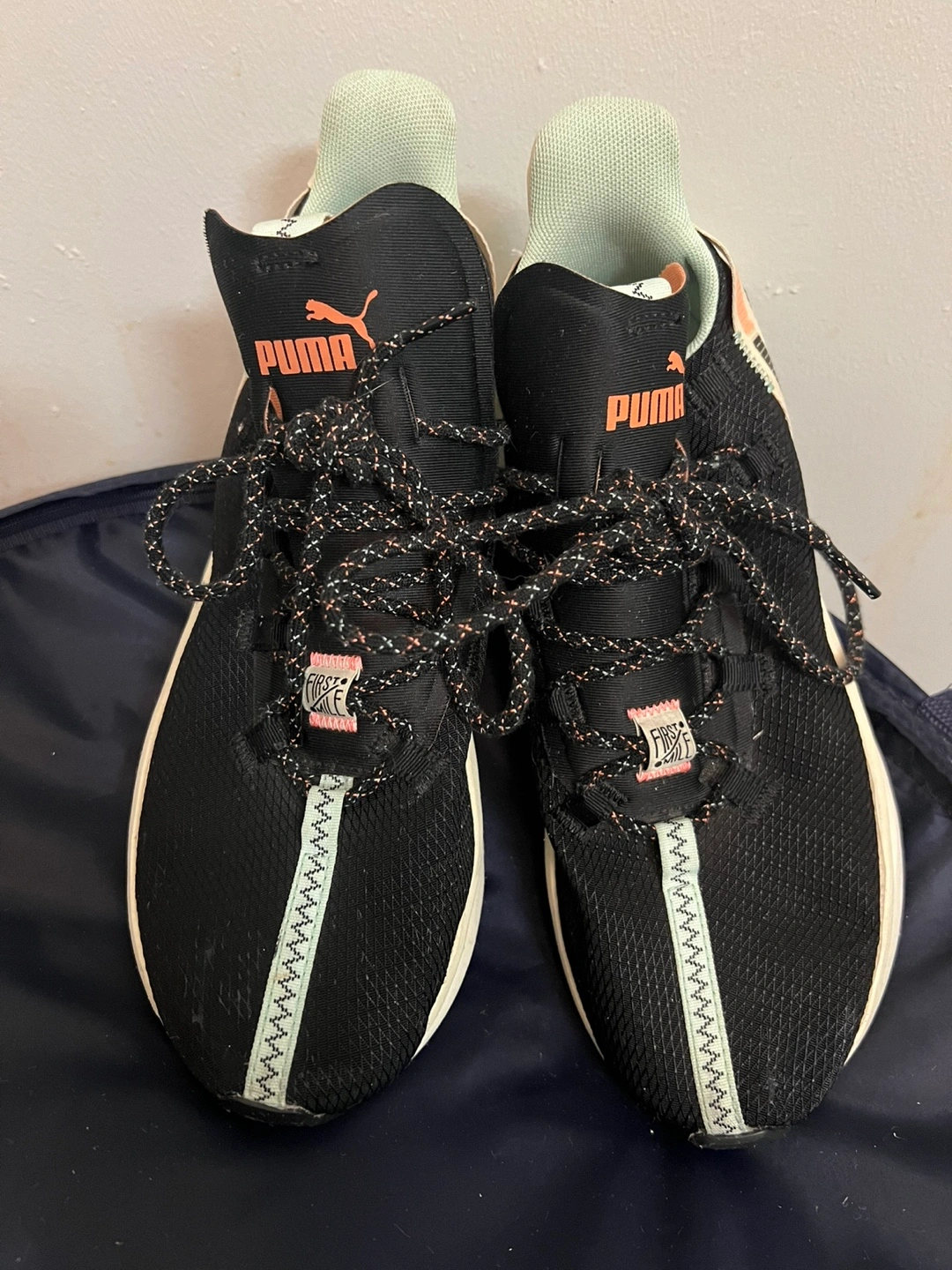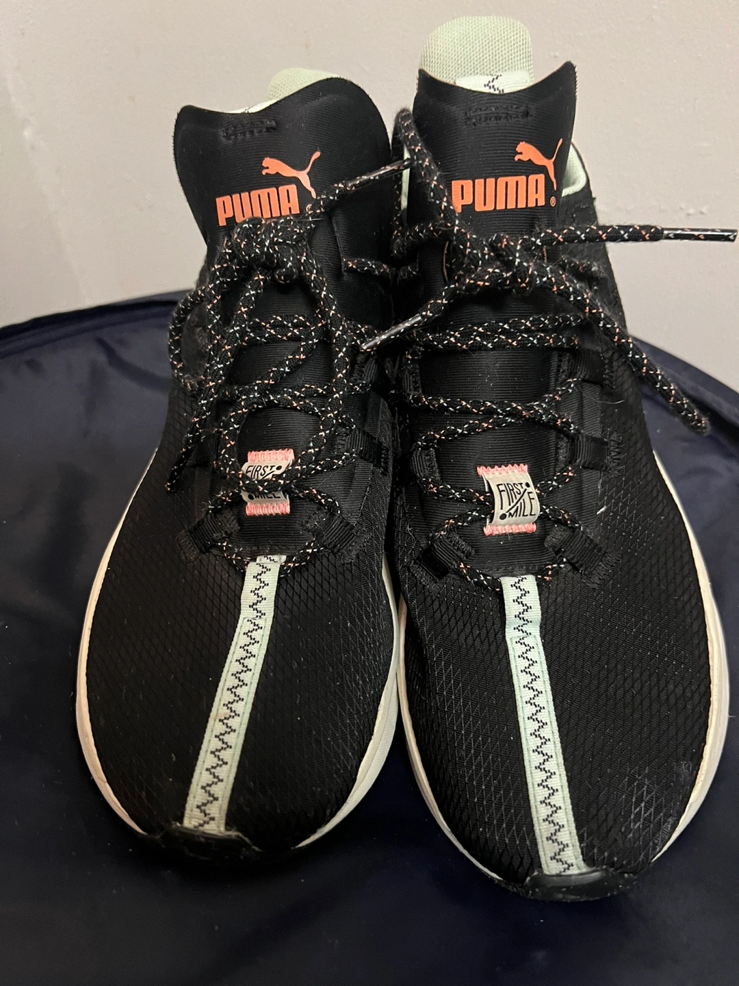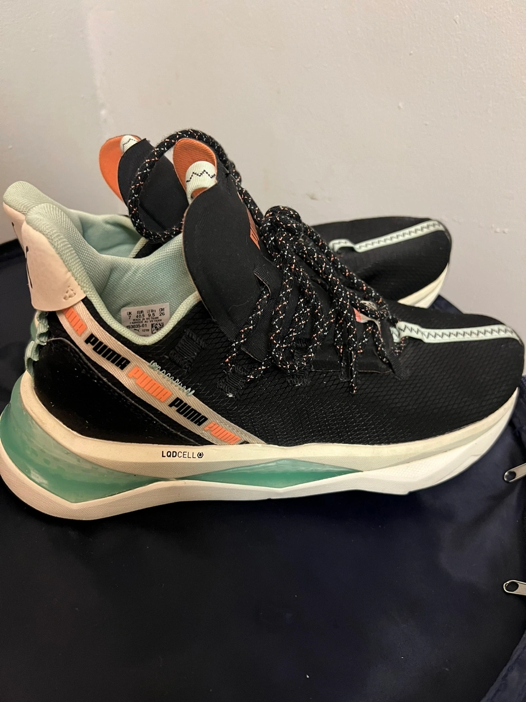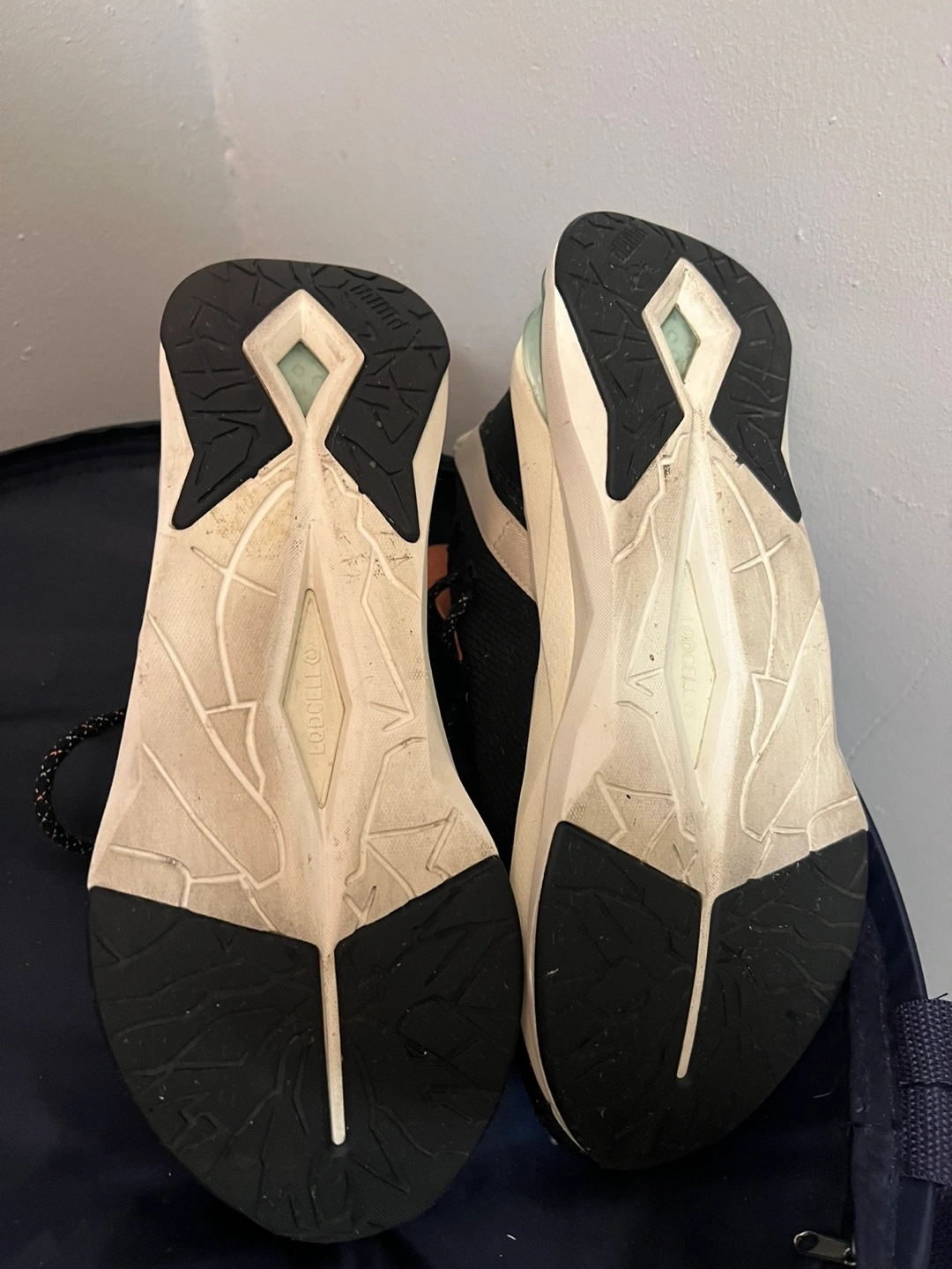 Selling a pair of Puma Lodcell running shoes in black. They have a unique design and are in good condition. Perfect for running or casual wear!