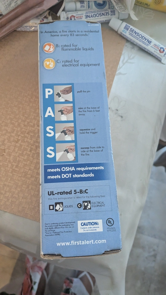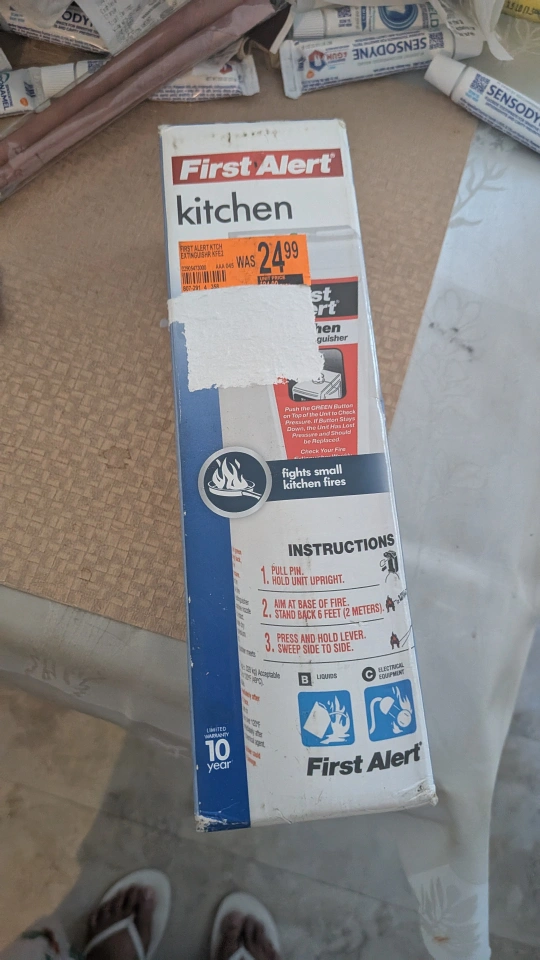 Selling a new First Alert kitchen fire extinguisher! It's still in the box and ready to keep your kitchen safe. The box has instructions on how to use it in both English and Spanish. It's rated for flammable liquids and electrical equipment. Originally was $24.99.