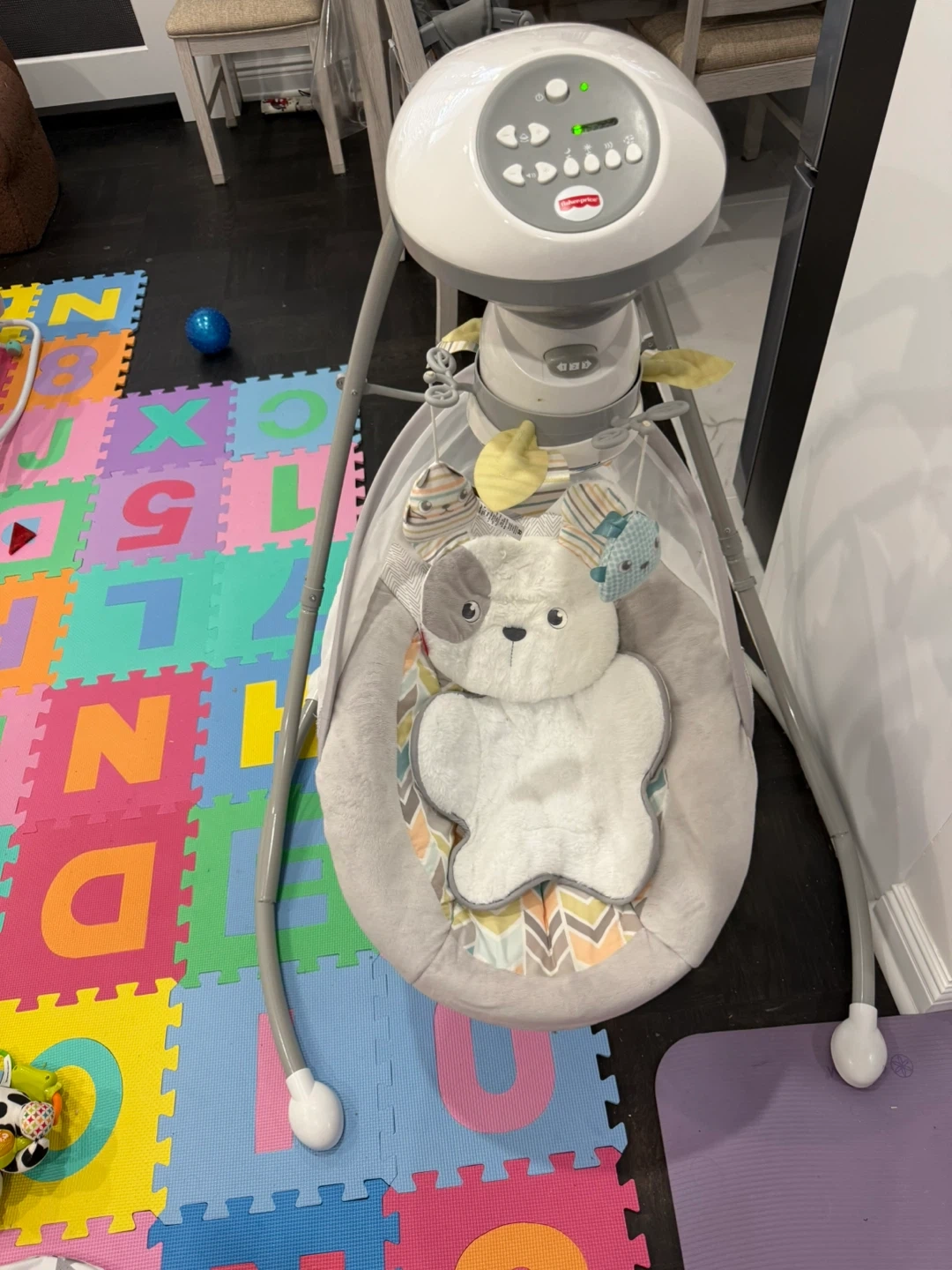 Selling a Fisher-Price Cradle 'n Swing! It features dual motion, so it can swing side-to-side or head-to-toe. The swing has different speed settings and plays music and nature sounds to soothe your baby. It also has a mobile with soft toys to entertain them. It's in great condition and has been well taken care of