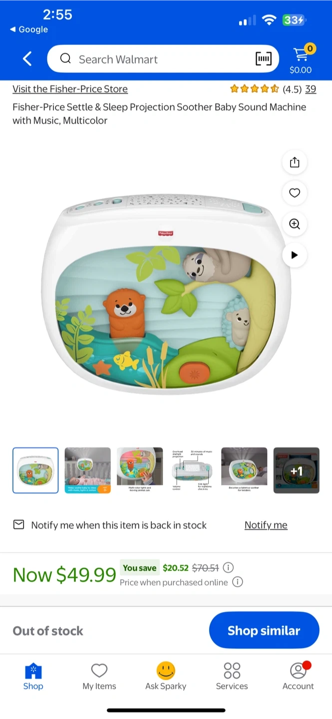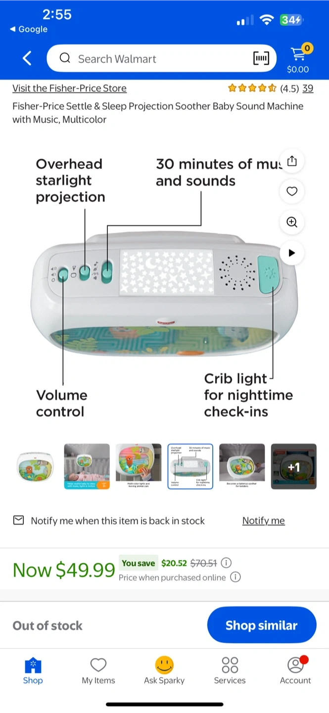 62I'm selling a Fisher-Price Settle & Sleep Projection Soother Baby Sound Machine with Music. It features overhead starlight projection and 30 minutes of music and sounds. It also has a crib light for nighttime check-ins. Originally bought for $49.99 Selling for $25 AS IS Batteries not included Cash only Pick up only