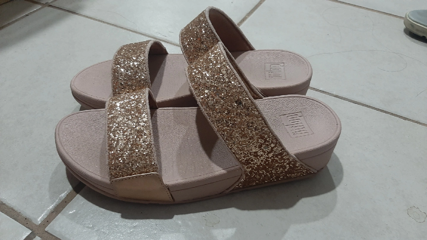 These FitFlop sandals are perfect for adding a touch of sparkle to your outfit! They are a size 9 and feature a glittery strap design. They are in great condition and ready for a new home!