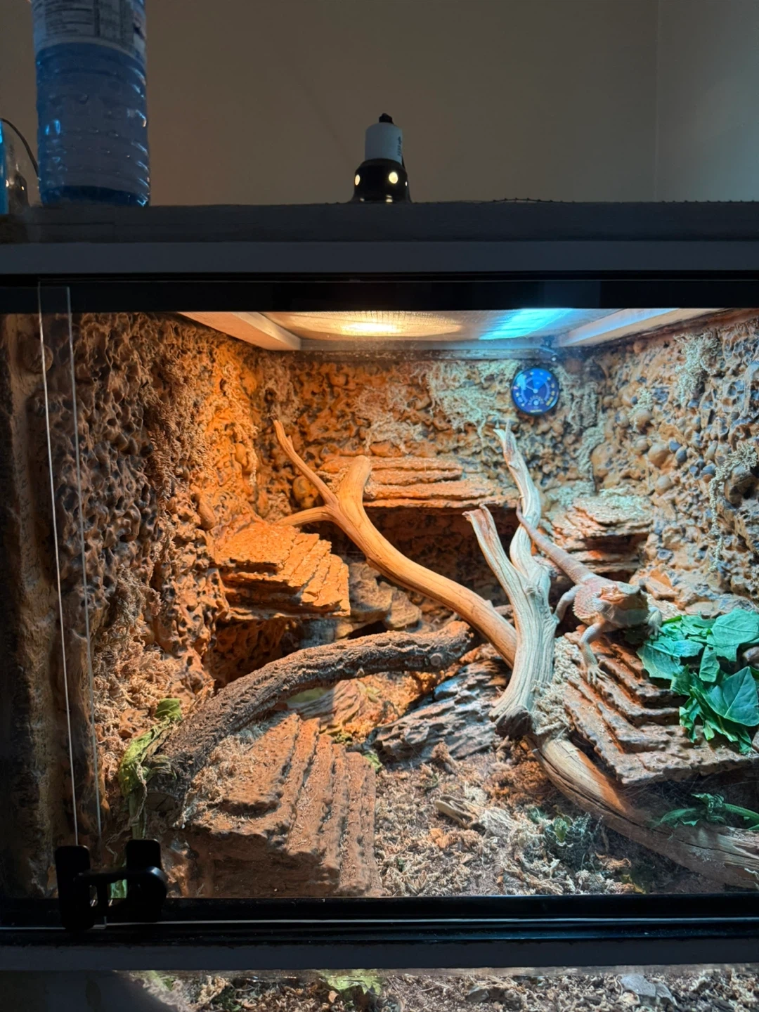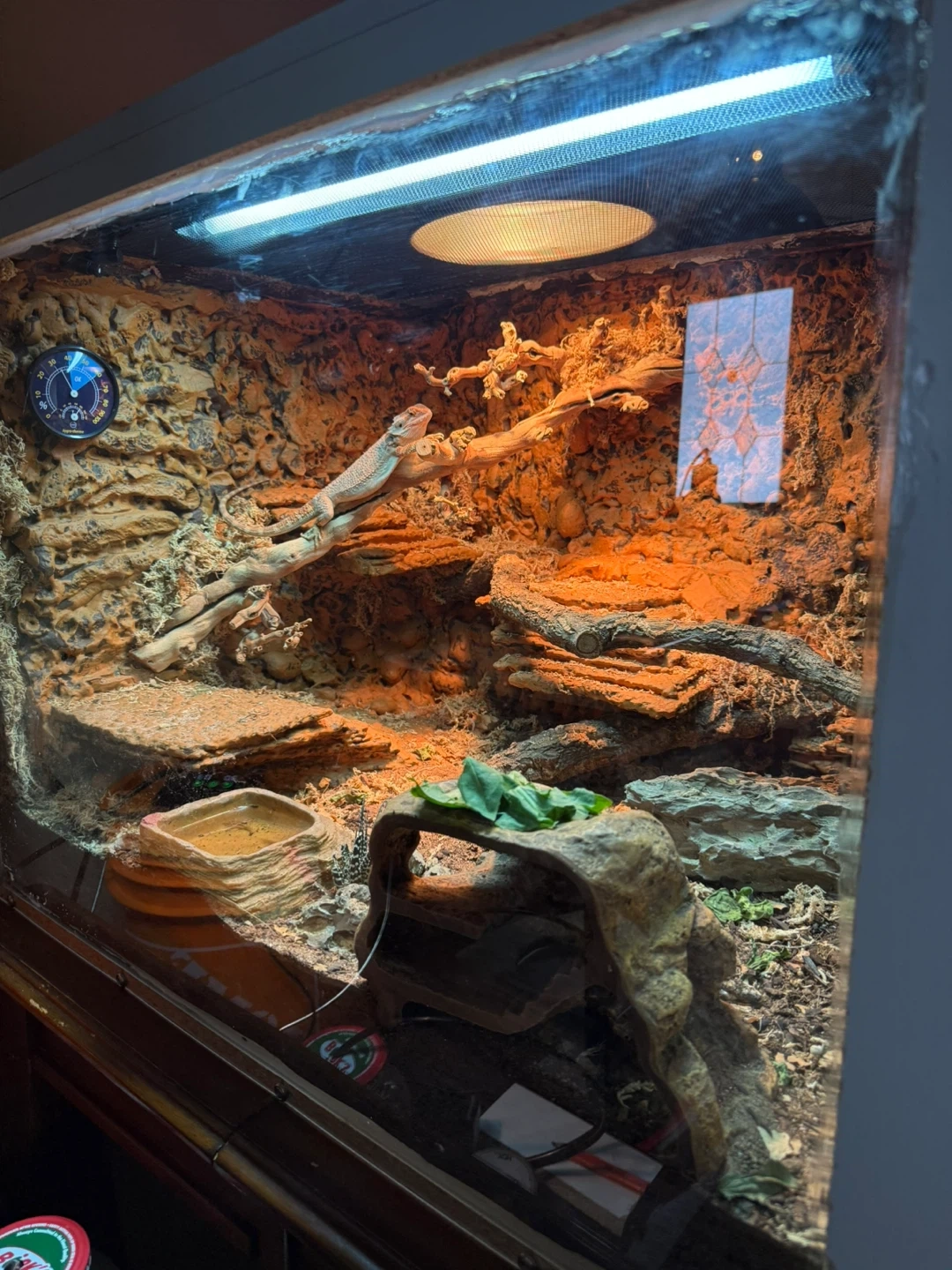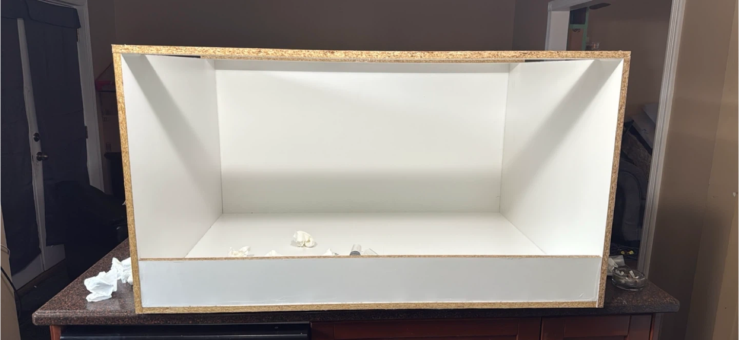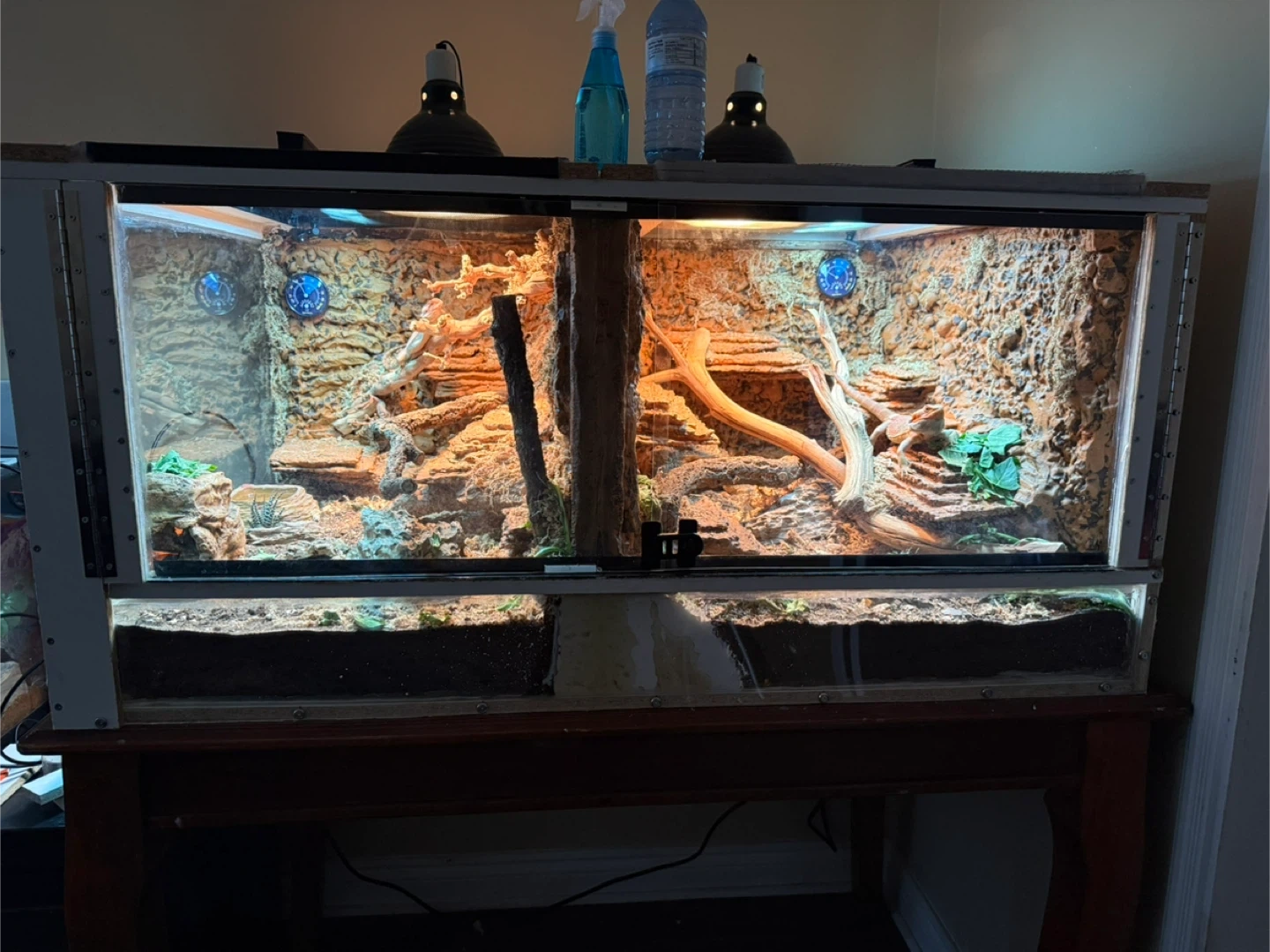 This is a spacious terrarium habitat 200gallon, this one is for my couple of bearded dragons! It's designed with multiple levels and climbing branches to mimic a natural environment and features a tunnel passage in the middle wall for breeding purposes with a removable acrylic glass!